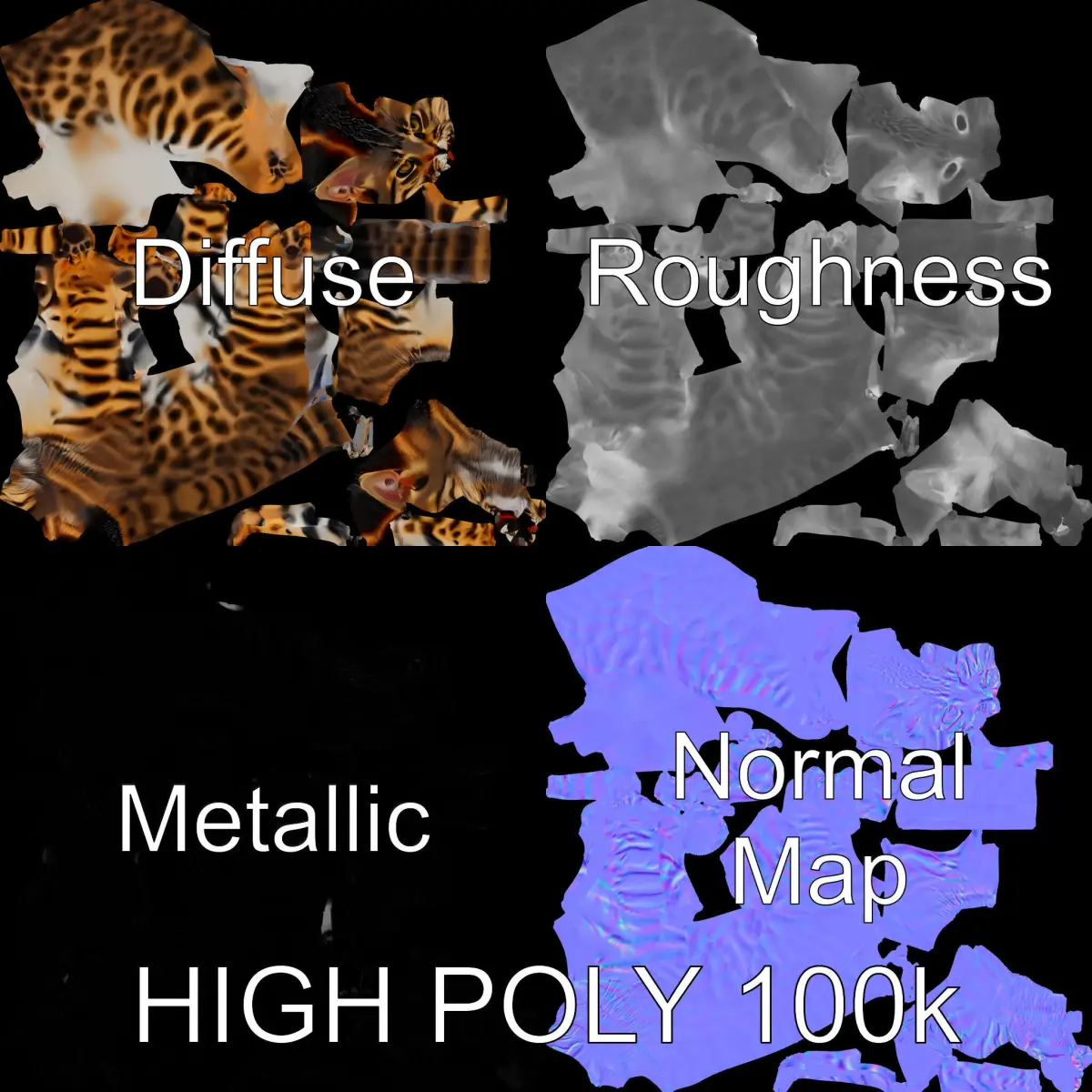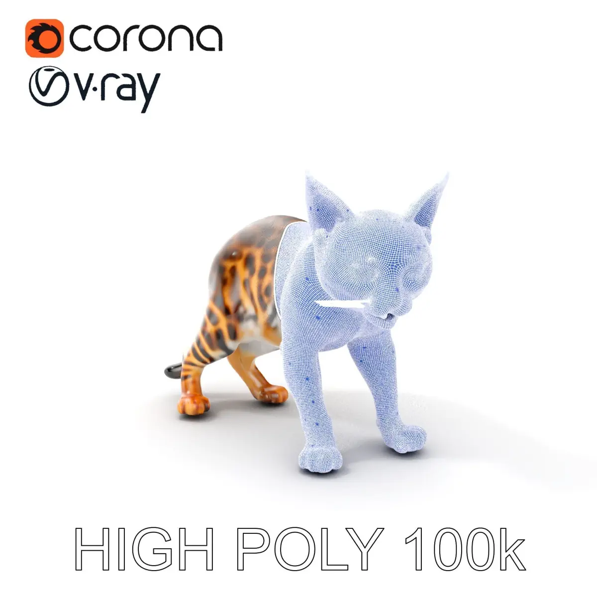 This 3D Bengal cat model offers three levels of detail for various applications: from mobile gaming to high-quality production rendering using tools like 3ds Max, Maya, Blender, and compatible with game engines such as Unity and Unreal. PBR textures ensure realistic representation, while the model’s detailed unwrapped UVs prevent overlap, enhancing rendering quality. Ideal for animation projects, interactive presentations, and virtual environments. The model’s textures come in 4096x4096 resolution, offering high fidelity and realism, with Diffuse, NormalMap, and reflection/roughness/metallic maps available. The first image is the reference used for creating the 3D model. It is important to carefully evaluate the quality of the model by examining the preview images that display the topology and polygonal mesh. These previews (WIRE and WEB 3D Preview) clearly demonstrate how accurately the model matches the original reference and how well the geometry has been executed. Please like and comment if you find the model useful for your projects.