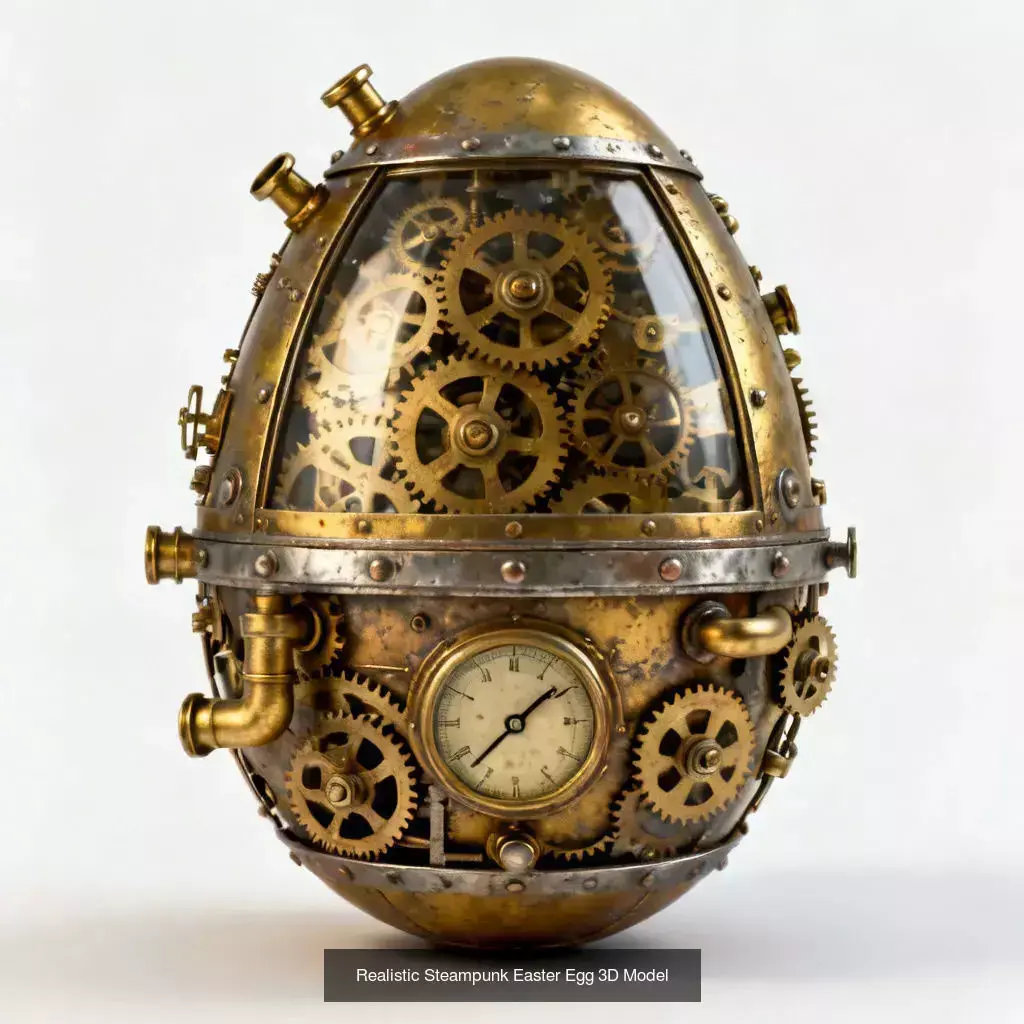 Festive Gadgetry & Navigation: Master the mechanics of time and space with the Realistic Easter Egg Clock 3D model and find your way through the industrial smog with the highly detailed Realistic Steampunk Easter Compass 3D model.