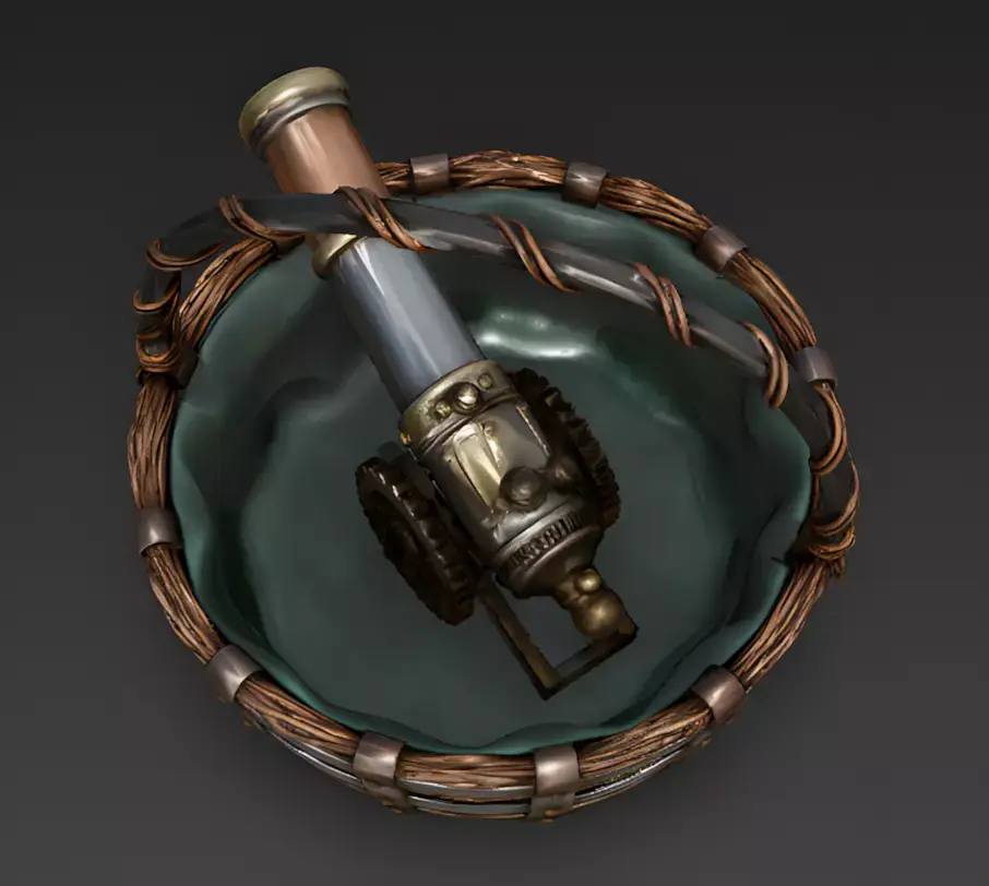 Quick Tip: To enhance the realism in a workshop or laboratory scene, apply a high-gloss Roughness Map specifically to the brass muzzle and the polished rivets. This will create sharp, realistic metallic highlights under dynamic interior lighting, showcasing the asset's mechanical complexity and premium material quality.