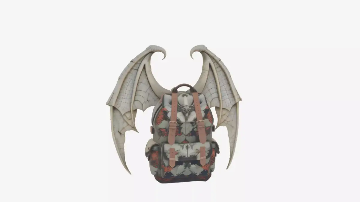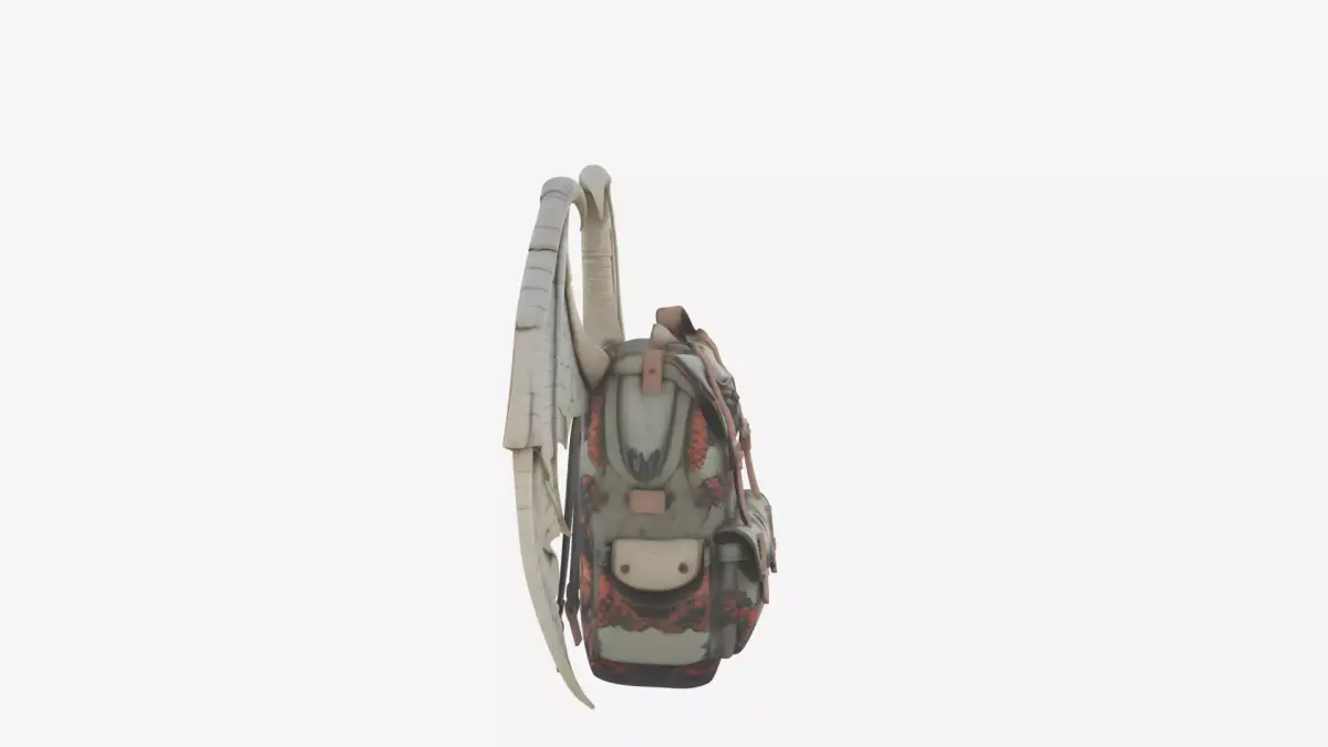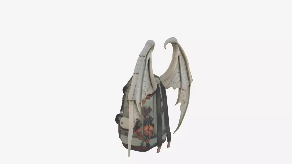 Detailed Gargoyle Wing Backpack 3D ModelThis intricately detailed gargoyle wing backpack features a realistic stone texture with fine cracks and weathering effects. The design includes sturdy strap buckles, foldable wings that can be extended or collapsed, and fabric elements with unique printed patterns. The comprehensive 3D model showcases four essential angles: the dramatic front wing span, functional back strap adjustment system, textured left side with detailed cracks, and the precise right side buckle mechanism. Perfect for video games, animations, or fantasy-themed projects requiring a distinctive and highly detailed backpack accessory.