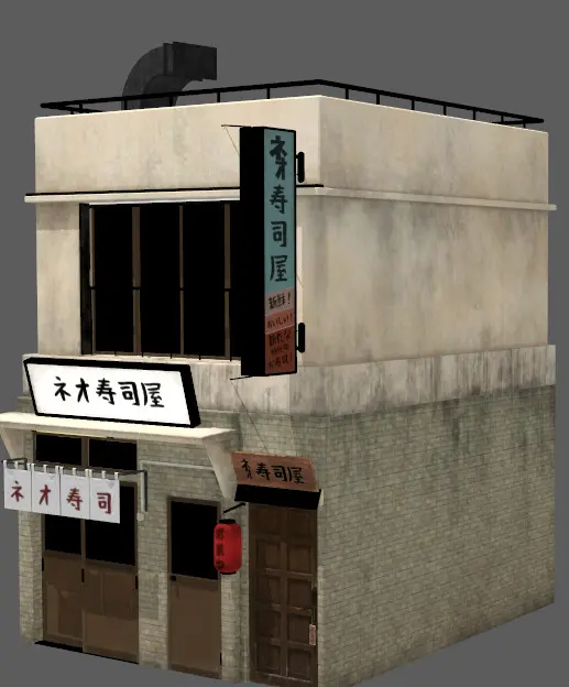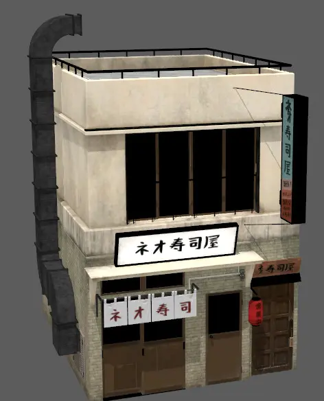 Realistic sushi restaurant architecture house