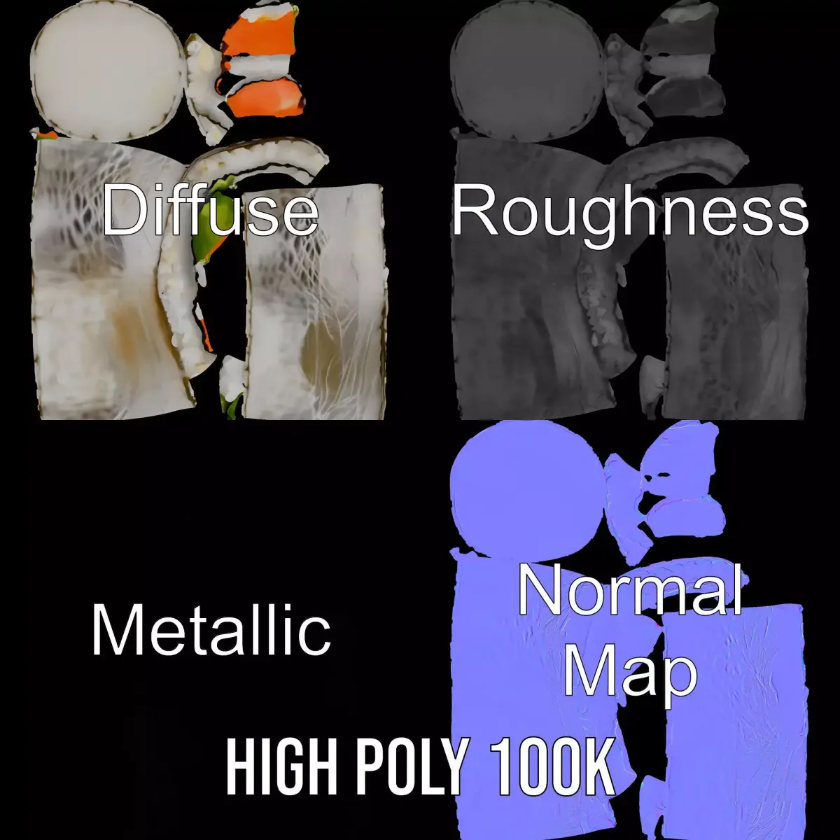 This model pack features a highly detailed and realistic 3D model of a sushi roll, designed to bring authenticity to your visual projects. Each model has 3 levels of detail: low-poly (1000 triangles for mobile), middle-poly (10,000 triangles for environment), and high-poly (100,000 triangles), allowing for use in production rendering with 3ds Max, Maya, and more, as well as game engines like Unity and Unreal. Perfect for virtual reality experiences, cooking simulations, or restaurant promotional materials. The model's textures include PBR, Diffuse, NormalMap, and reflection/roughness/metallic, compatible with any modern rendering engine. All models are accurately unwrapped with no overlapping UVs. All textures are 4096*4096 in size. The first image is the reference used for creating the 3D model. It is important to carefully evaluate the quality of the model by examining the preview images that display the topology and polygonal mesh. These previews (WIRE and WEB 3D Preview) clearly demonstrate how accurately the model matches the original reference and how well the geometry has been executed. If you like the model, please leave a comment and a like!