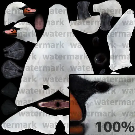 Realistic Swan 3D model with render and materials setup for Octane Render version 4.05-R7. HDRI map (cloudy sky) used as a light source is not included. The Swan has 2 texture variations, one for rendering with feathers and one without them. Feathers are a separate object so they can be easily hidden or removed from the model.