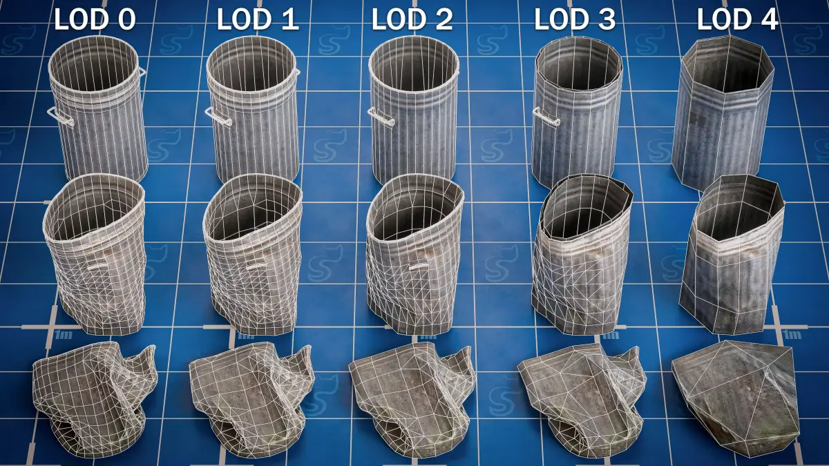 A set of realistic trash bins, perfect for urban, industrial, post-apocalyptic, military, or steampunk environments.This pack includes several trash bins with varying degrees of dents and rust — from a brand-new, clean bin to a crumpled and rusty piece of metal. Ideal for games, cinematics, and environment scenes.