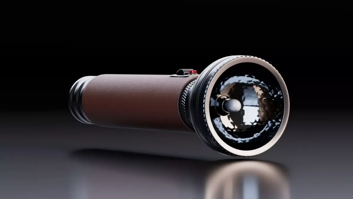 This high-quality vintage flashlight 3D model is designed for realistic rendering, game environments, and cinematic scenes. The model features detailed metal components, reflective lens surface, and textured leather grip, making it ideal for close-up renders and professional visualization projects.