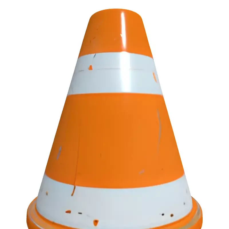 This highly detailed 3D model faithfully represents a classic orange traffic cone, featuring realistic wear and tear, including scratches, chips, and dirt, giving it an authentic, used appearance. It is an ideal asset for enhancing the realism of various digital environments and projects. Possible usage scenarios include populating urban street scenes in architectural visualizations, adding environmental details to construction site renders, or serving as an interactive prop in video games and simulations. Its optimized geometry and clean topology ensure smooth performance across different platforms, making it suitable for real-time applications such as game development, augmented reality (AR), and virtual reality (VR) experiences, as well as high-quality static renderings for films and animations. The model comes fully UV unwrapped with a comprehensive set of PBR (Physically Based Rendering) textures, guaranteeing realistic material representation under diverse lighting conditions. It is provided in multiple industry-standard file formats including GLB, OBJ, STL, ABC, DAE, FBX, USD, and PLY, ensuring broad compatibility with most 3D software and game engines. This asset is perfect for creating immersive, believable digital worlds.