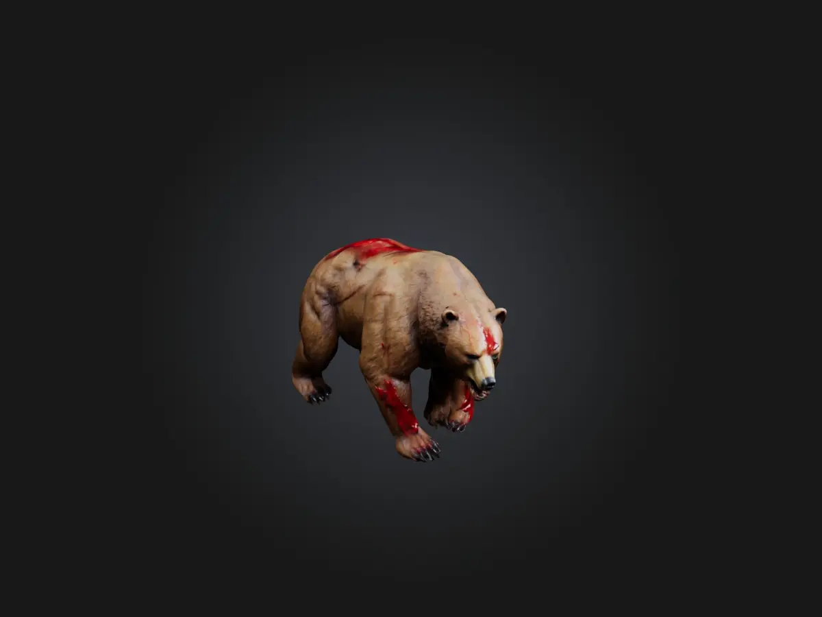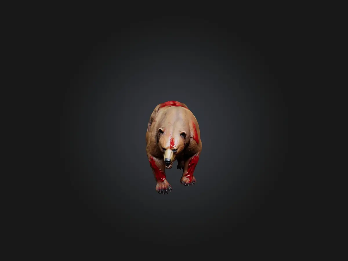 wounded bear, 3D bear model, injured bear, realistic bear, wild animal, bear injuries, 3D wildlife