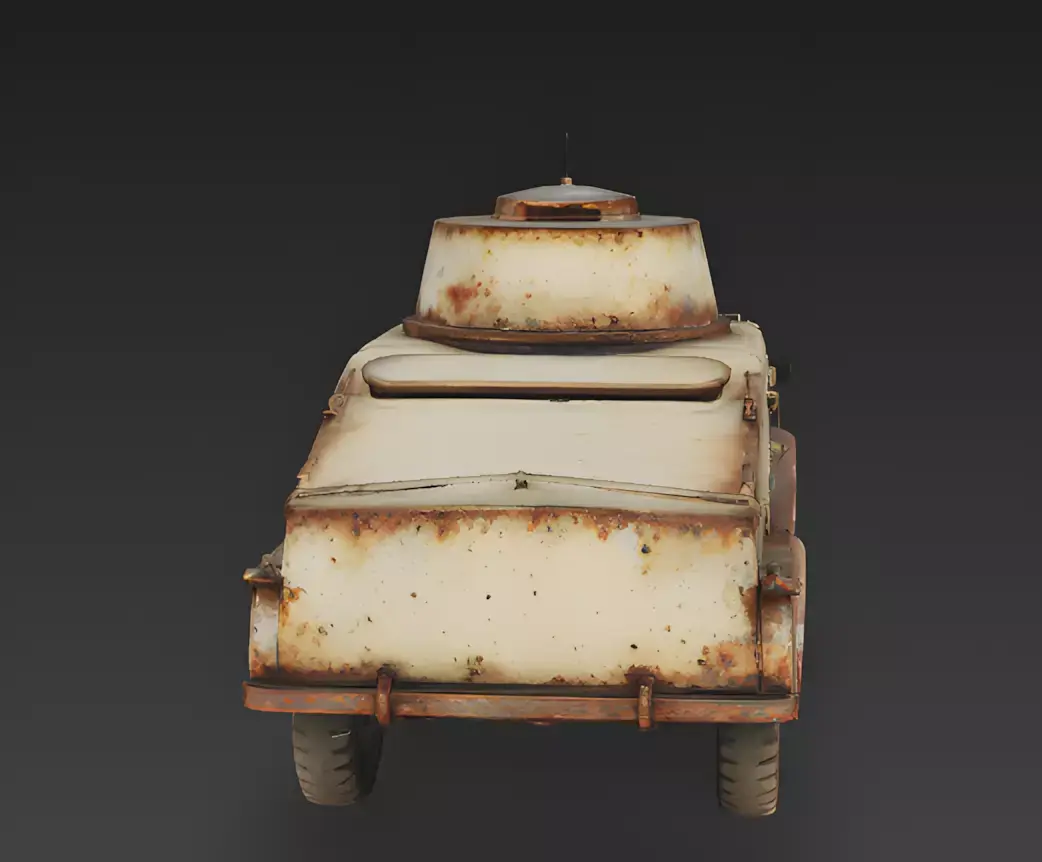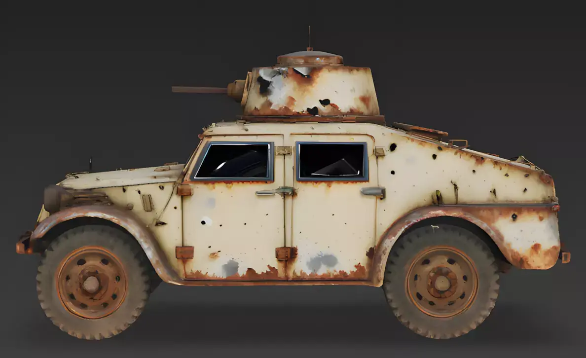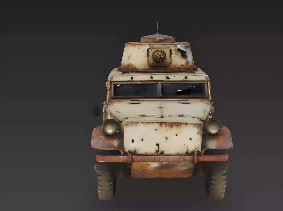 Asset BreakdownThe Overall ConceptThis asset is a high-fidelity, 3D-modeled realistic wrecked armored vehicle 3D model designed as a primary environmental landmark for post-apocalyptic urban levels, historical desert battlefields, or cinematic war-zone visualizations. Focusing on a forgotten-vanguard aesthetic, this model features a heavily decayed armored car silhouette integrated with severe structural corrosion and a small-caliber turret armament, making it an ideal choice for high-resolution character renders, recon-site quest objectives, or as a flagship environmental piece in realistic 3D games.