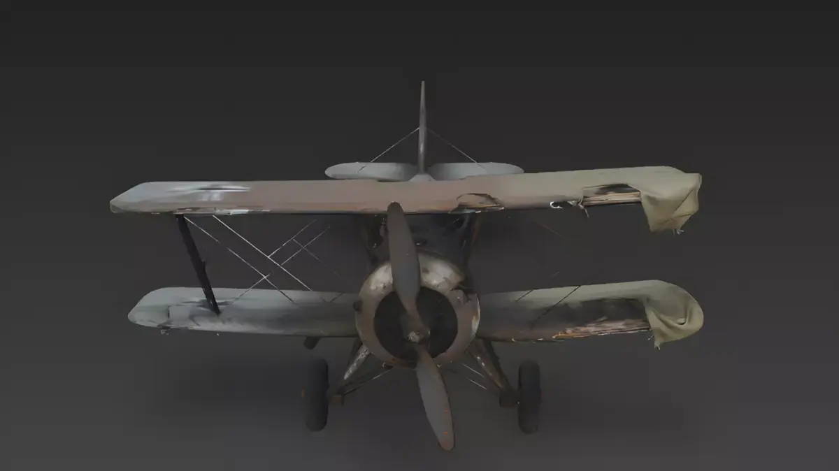 Optimized High-Fidelity GeometryThe entire realistic wrecked biplane 3d model is composed of efficient geometry designed for high-performance real-time rendering. Every element, from the individual wing rivets and tattered fabric shards to the solid metallic frame and tail assembly, is modeled as solid, opaque geometry to maintain a consistent realistic look without the need for complex, resource-heavy transparency shaders.