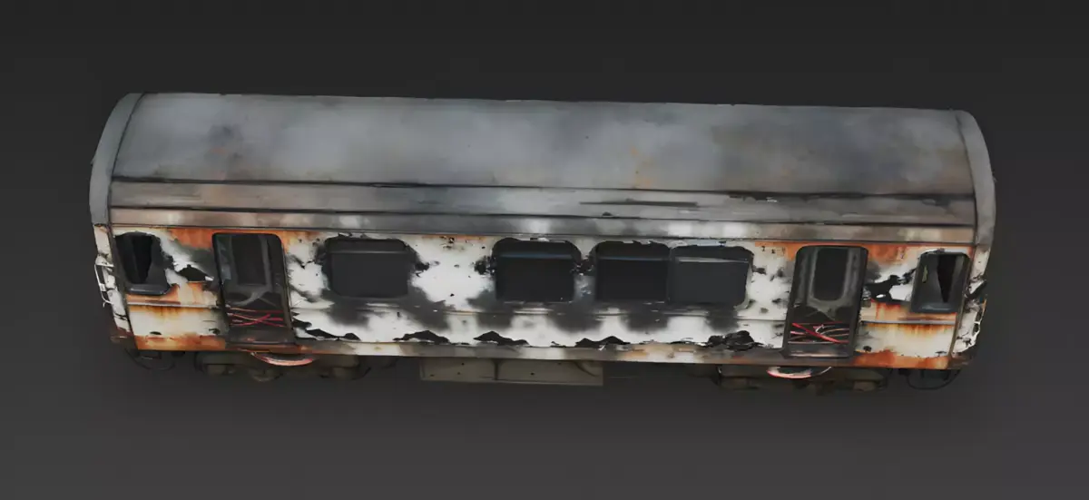 Optimized High-Fidelity GeometryThe entire realistic wrecked subway car 3d model is composed of efficient geometry designed for high-performance real-time rendering. Every element, from the individual cable segments and panel rivets to the solid metallic chassis and hollowed interior, is modeled as solid, opaque geometry to maintain a consistent realistic look without the need for complex shaders.