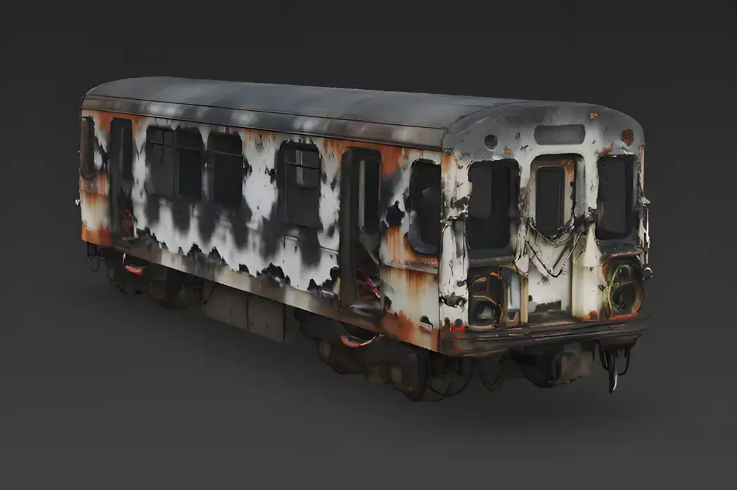 Quick Tip: To enhance the realism in a sun-drenched wasteland or dark subway tunnel scene, apply a high-detail Normal Map specifically to the charred edges and the exposed wiring. This will create realistic surface shadows and a gritty, soot-covered texture that contrasts beautifully with the rusted metallic body under dynamic lighting, showcasing the asset's diverse material quality and premium derelict design.