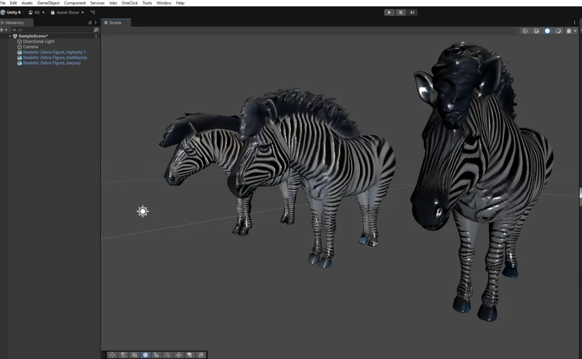 This high-quality 3D zebra model is designed for a variety of applications, from mobile games to high-end animations and renders. The model is available in three polygon counts: 1,000, 10,000, and 50,000, allowing for optimized performance based on your project requirements.