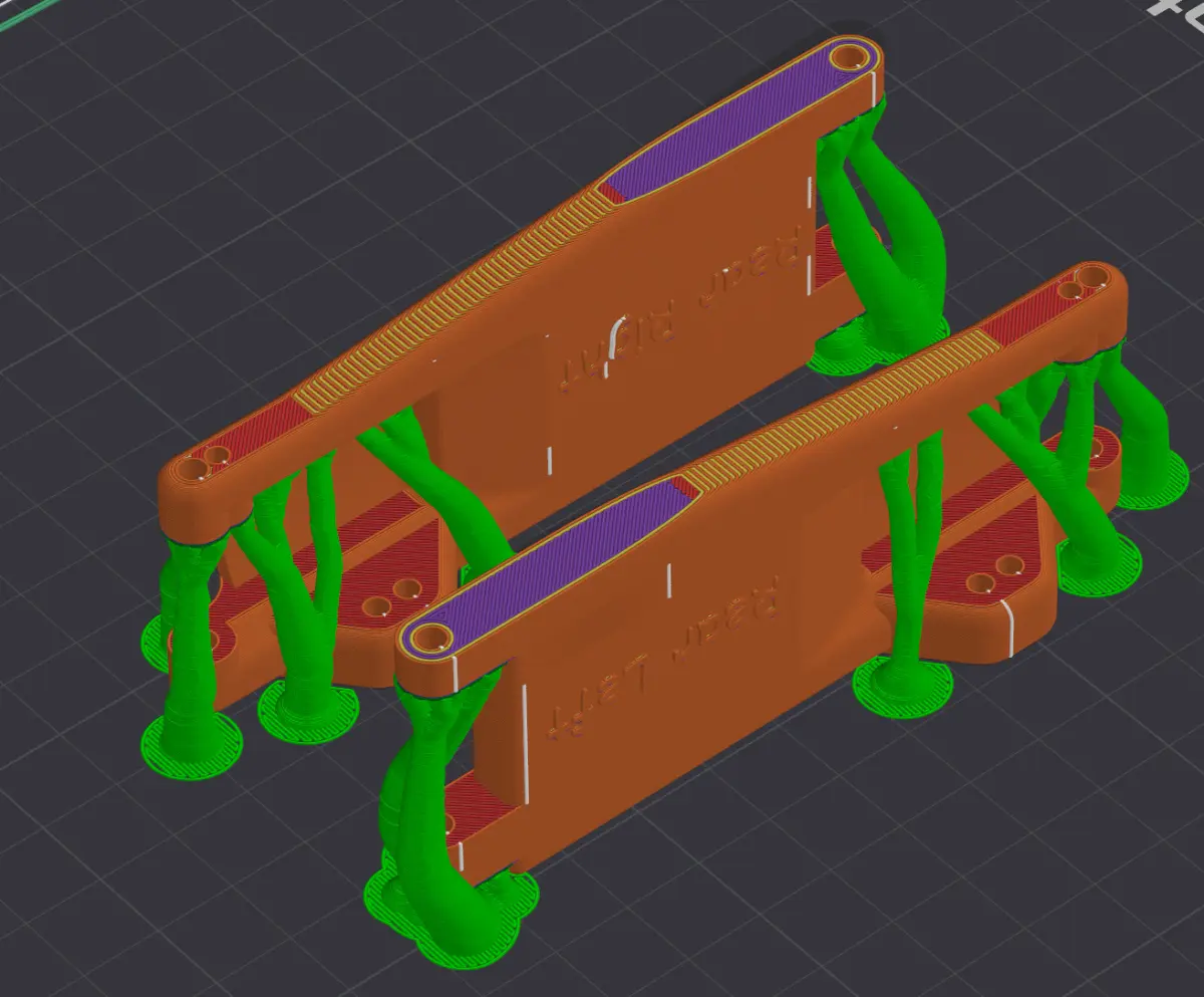 I really liked the front A-Arms that intashu designed, but I found out that he didn't make ones for the rear A-Arms, so i CAD'd up my own, I designed them to be very thick and durable so these hopefully won't ever break like the last ones did. I installed this on my ECX Torment and it worked flawlessly, the 100% infill 95A TPU allows me to take this on crazy jumps and ram it into walls at max speed without worrying about breaking this part because it only bends, not snaps.