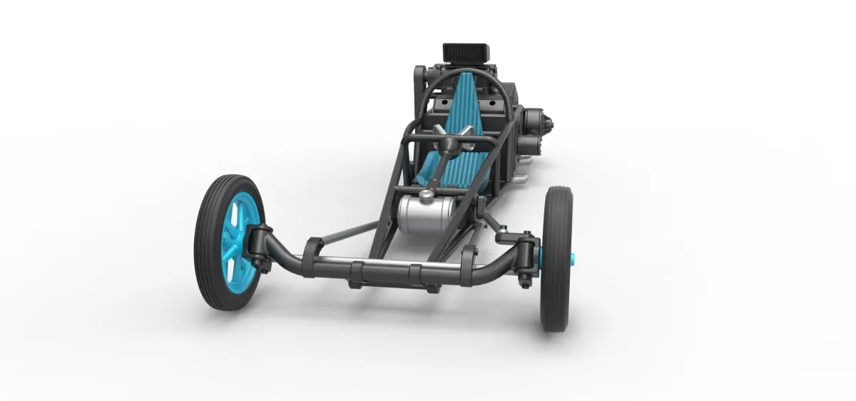 The model consists of parts: Air intake, Belt, Body, Brake disk, Engine, Front exhaust pipes, Front rims, Front tires, Main gear, Rear exhaust pipes, Rear rims, Rear tires, Rear wheels axle, Seat part 1,2, Shifter, Steering wheel, Tank.