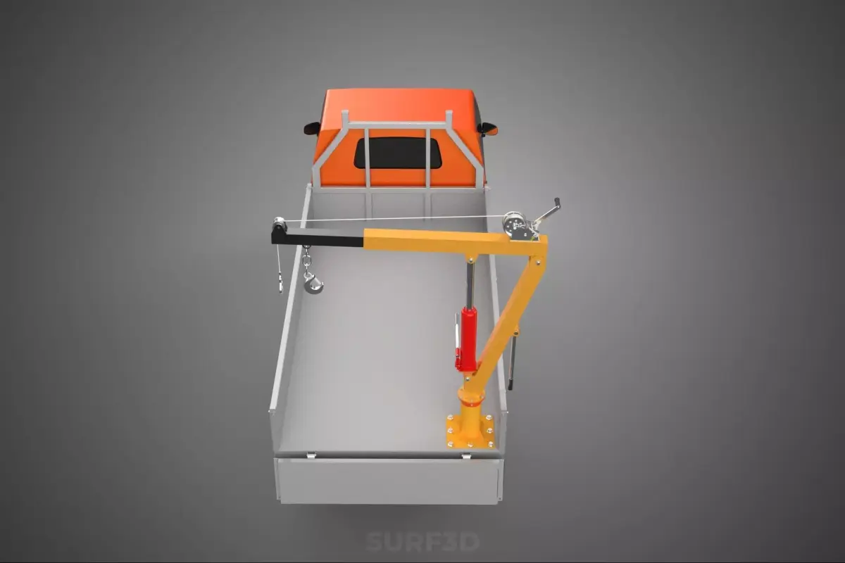 - Host Platform – Pickup Truck Tailgate: The fundamental component is the pickup truck, a versatile utility vehicle characterized by its open cargo bed and a hinged rear gate, or tailgate. The tailgate typically serves as the primary access point to the truck bed, and in this configuration, it or its immediate surrounding structure often provides a reinforced mounting point or stability support for the integrated crane system, particularly when the crane is designed for rear-mounted operation. The tailgate itself is a robust, hinged panel that secures cargo when closed and can be lowered to provide an extended loading surface or ramp.