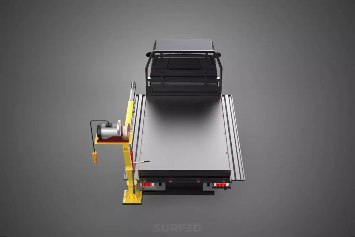 The foundational element of this vehicle is typically a heavy-duty pickup truck chassis or a light commercial truck platform. This base vehicle undergoes significant modification and reinforcement to accommodate the stresses imposed by crane operations and heavy cargo. The standard cargo bed is replaced with a flatbed, which is an open, flat platform without fixed side walls. This design provides unparalleled flexibility for transporting oversized or unusually shaped loads, such as lumber, piping, equipment components, or palletized goods, that would otherwise be difficult or impossible to carry. Crucial structural enhancements, including reinforced frame rails, a robust subframe, and upgraded suspension components, are implemented to ensure the vehicle's structural integrity and stability during both transit and lifting operations.