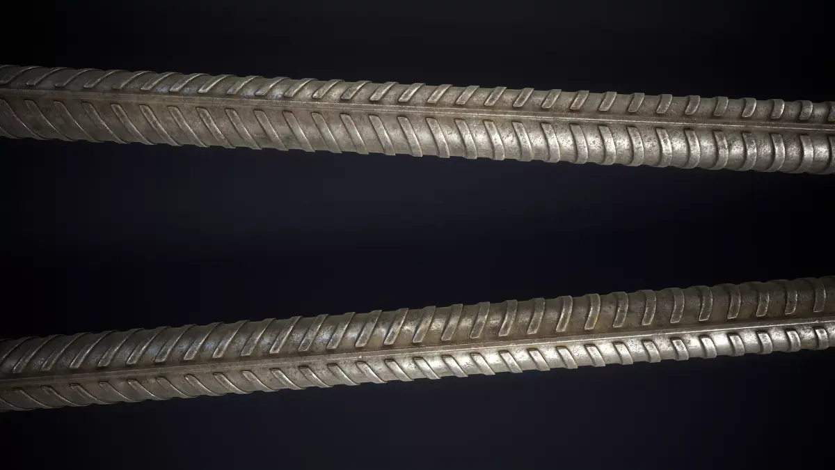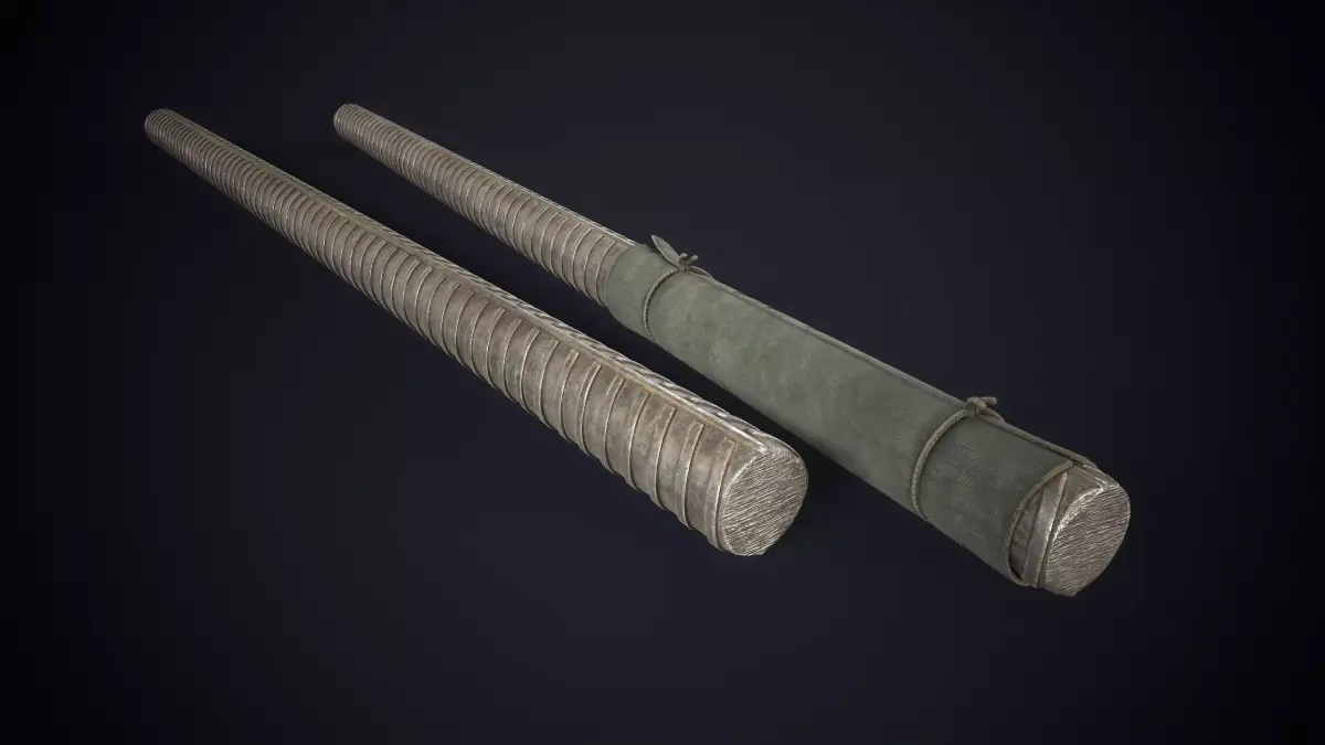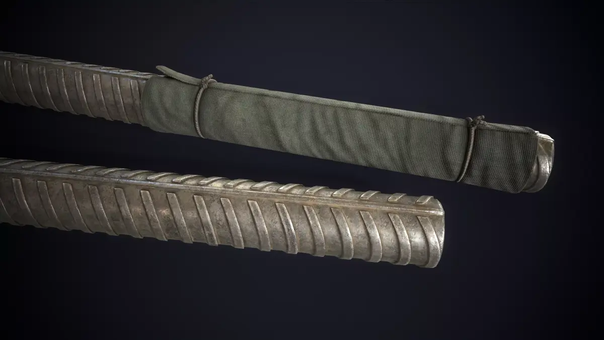 This model provides a metal rebar in two variants: a plain, weathered bar and a version featuring a wrapped fabric grip.