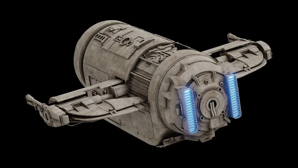 Custom design by Kim MurzinCargowisp, conceived as small attack shuttle or auxiliary starfighter. Rebel technicial ship, builded from cockpit module of YT-3100 Cargoweb-class corellian transport and parts of other ships. Used by small groups of rebels and guerrillas who did not receive sufficient supplies.2k UDIM textures and procedural materials for Blender included.Suitable for medium close-ups.