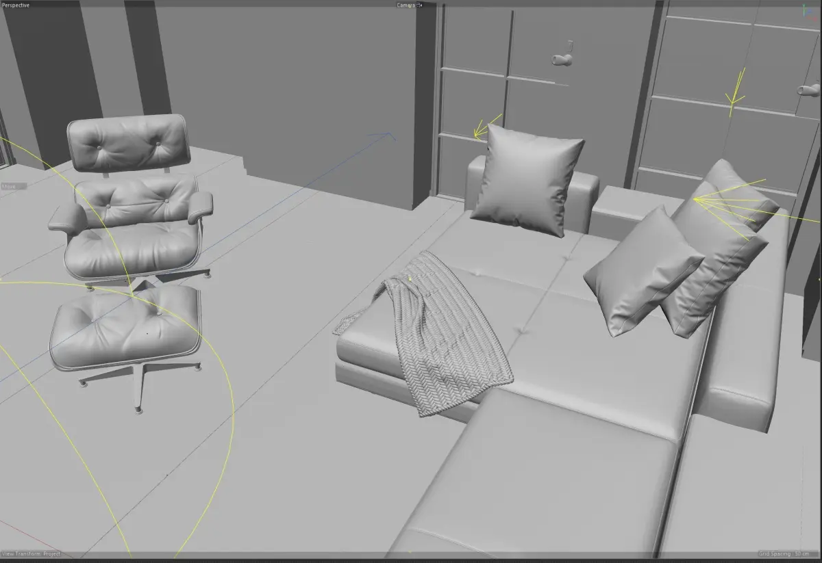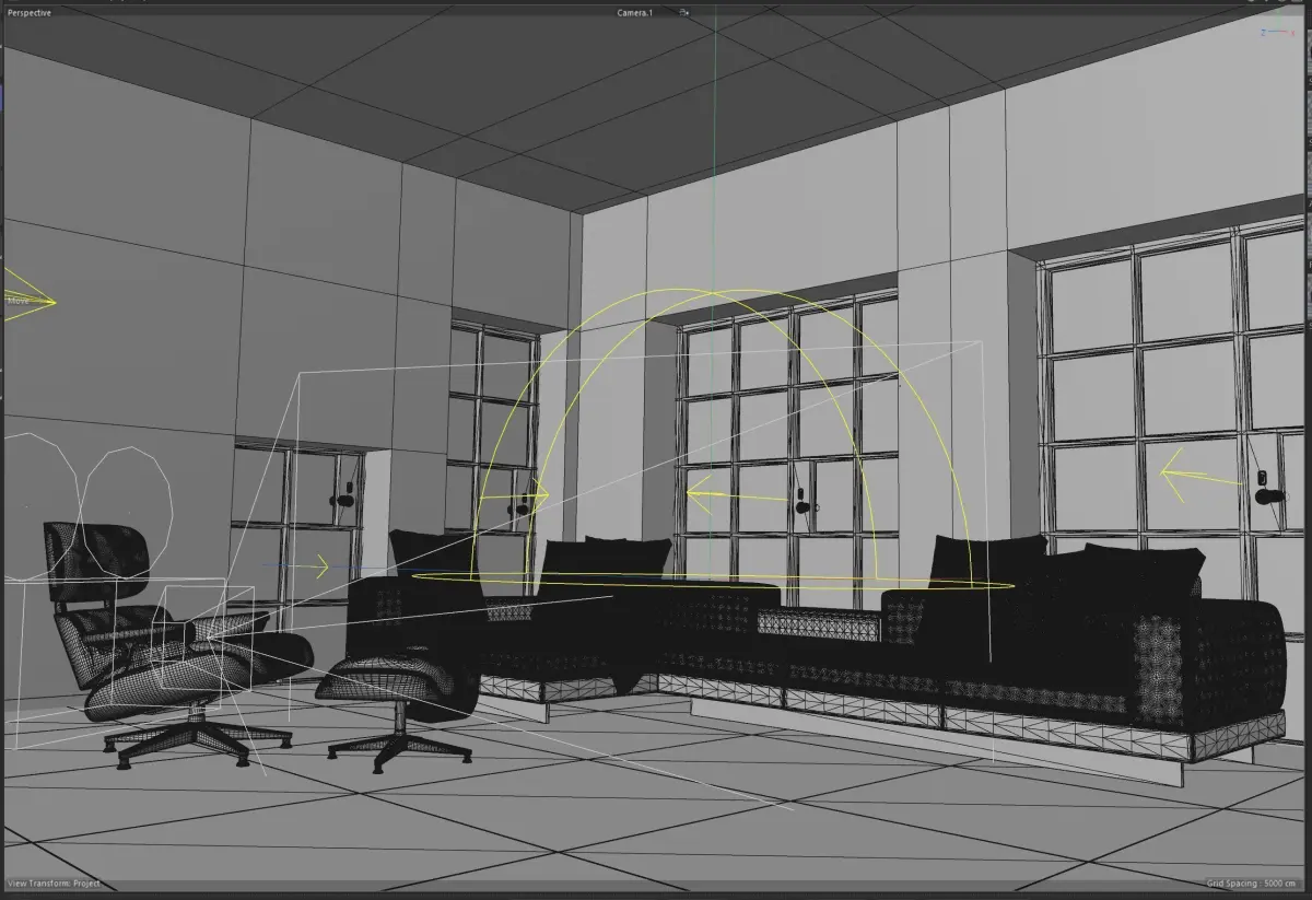Transfer Max to c4d Vray and rebuild the scene from evermotionThis fully textured interior scene with natural light setup, is ready to render with Vray for Cinema 4D. Inside the zip file you'll find textures. and inside the folder you have the load of effect in VFB and The lut used