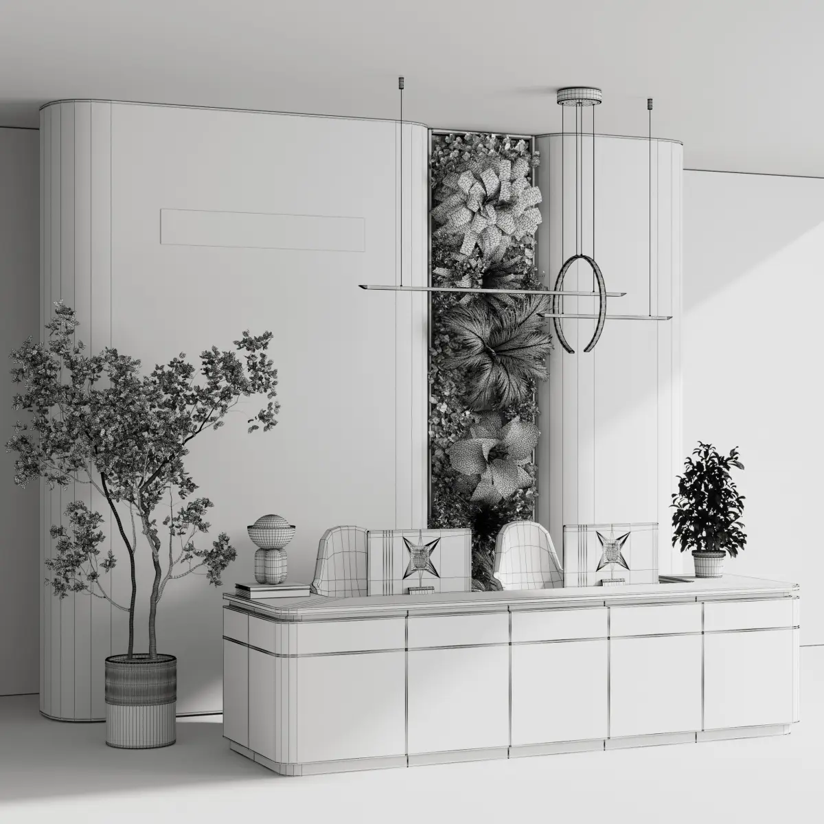 Reception desk - office furniture 06Platform: 3dsMax 2015 + obj fbxRender: Vray+CoronaStyle: ModernMaterials: Concrete, OrganicsFormfactor::