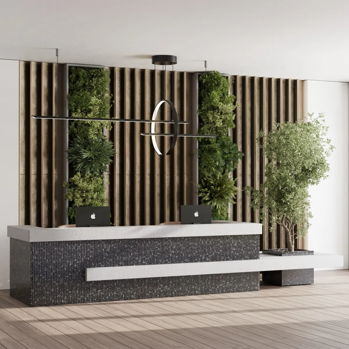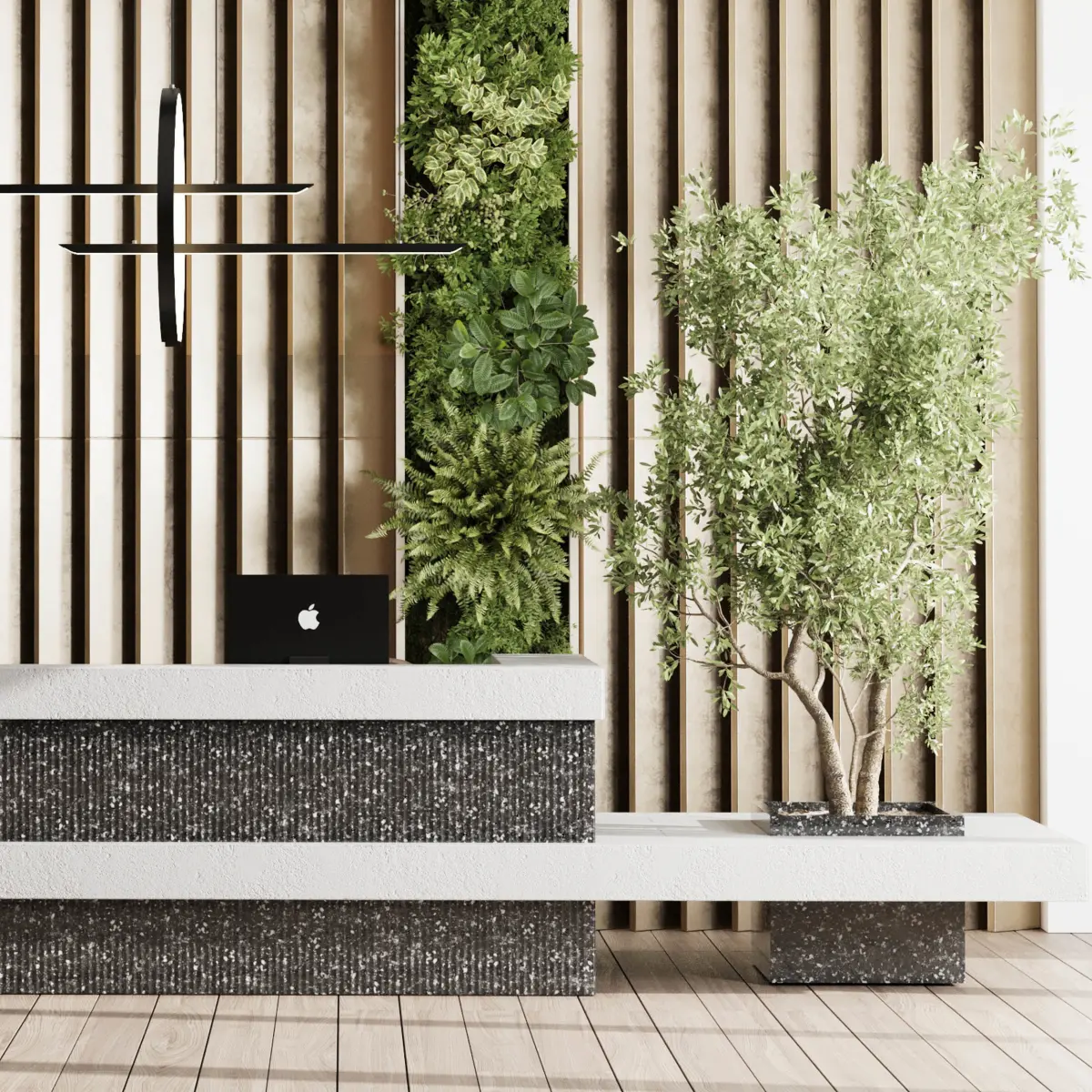 Reception desk - office furniture - Vertical Wall Garden With concrete frame 24