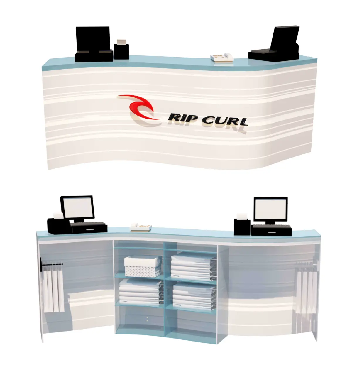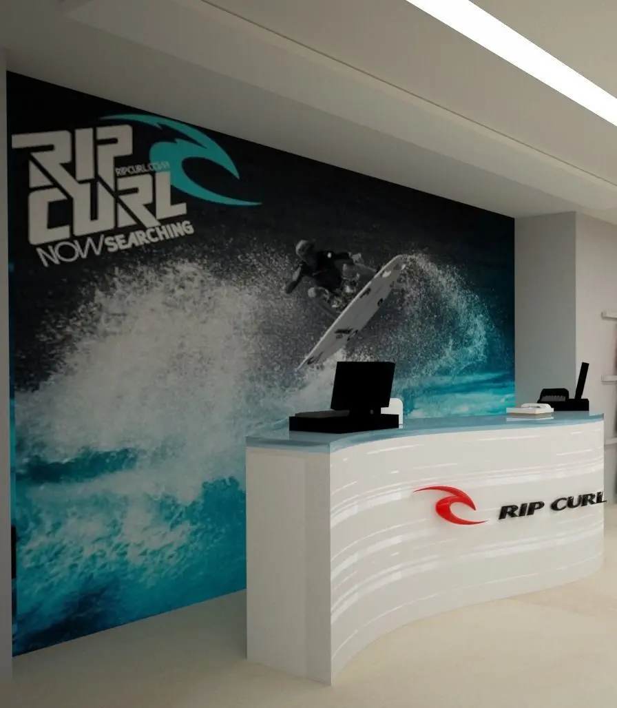 - A reception desk designed with love, specially inspired by the waves of the beach, reminding the identity of the famous surf brand Rip Curl