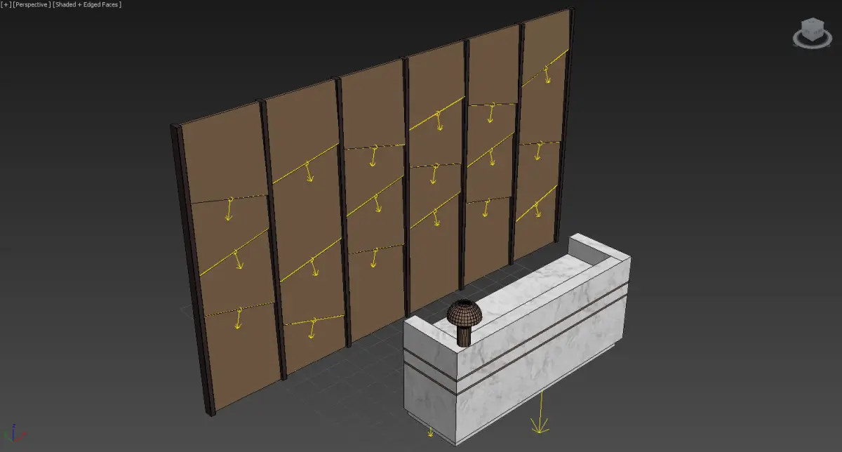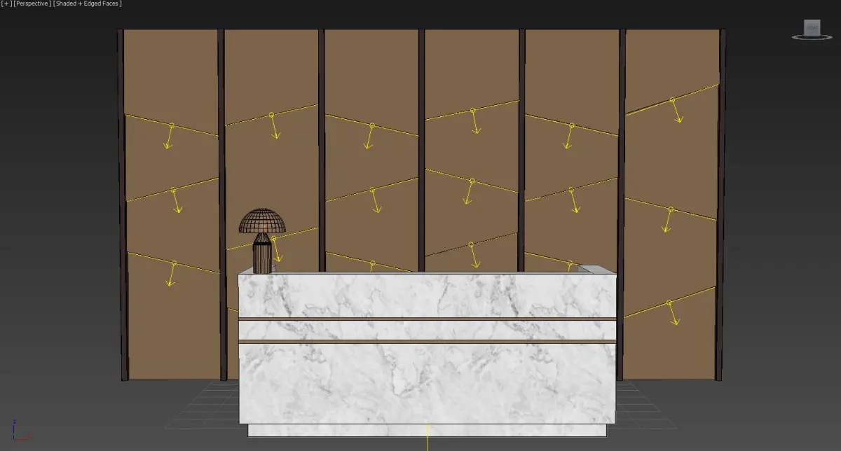 Reception marble desk with gold accents 3D model
