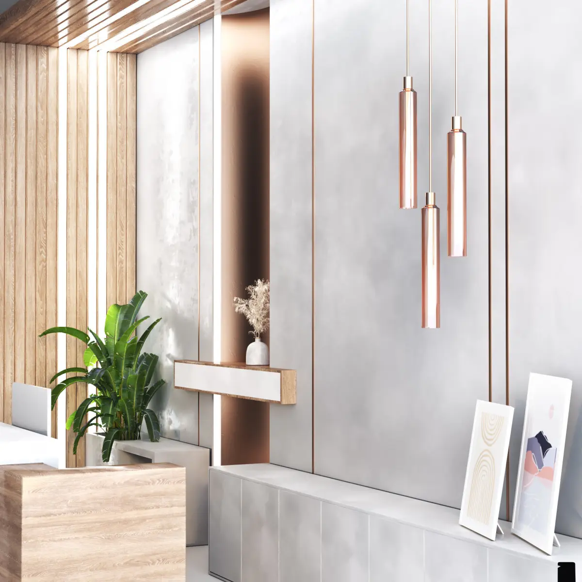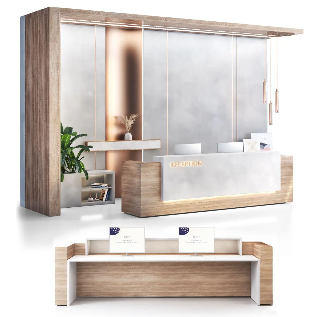 This model is a part of Reception, Lobby entrancedesign set(counter, wallpanels, lighting, shelving, monitor,chairs...), you can visit the collection by the link below and use your special discount to design by your style, wish you great renders. https://www.cgtrader.com/3d-model-collections/reception-lobby-designing