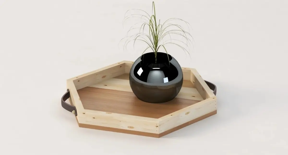 HomeCatalogReclaimed Wooden Hexagon Tray with Interior Planter Centerpiece 3D model