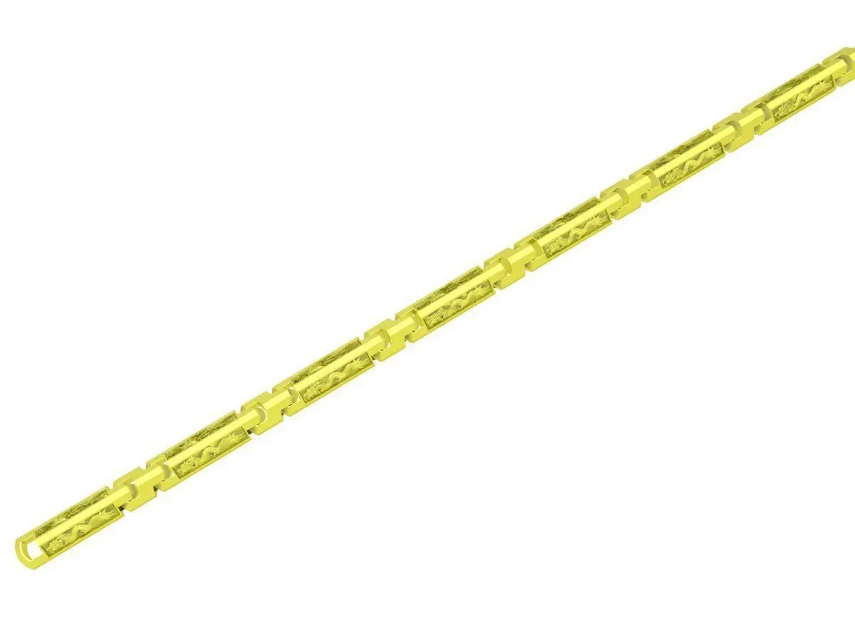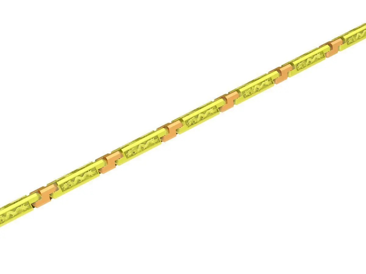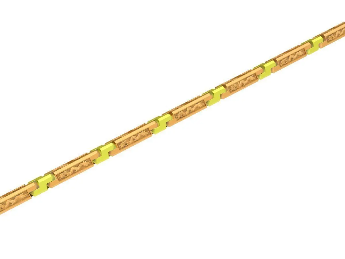 Each link is carefully modeled with balanced thickness and defined edges, ensuring durability while maintaining a refined appearance. The engraved patterns add subtle visual depth without compromising the simplicity of the design. The modular structure allows the chain to be easily adjusted in length, making it suitable for necklaces or bracelets.