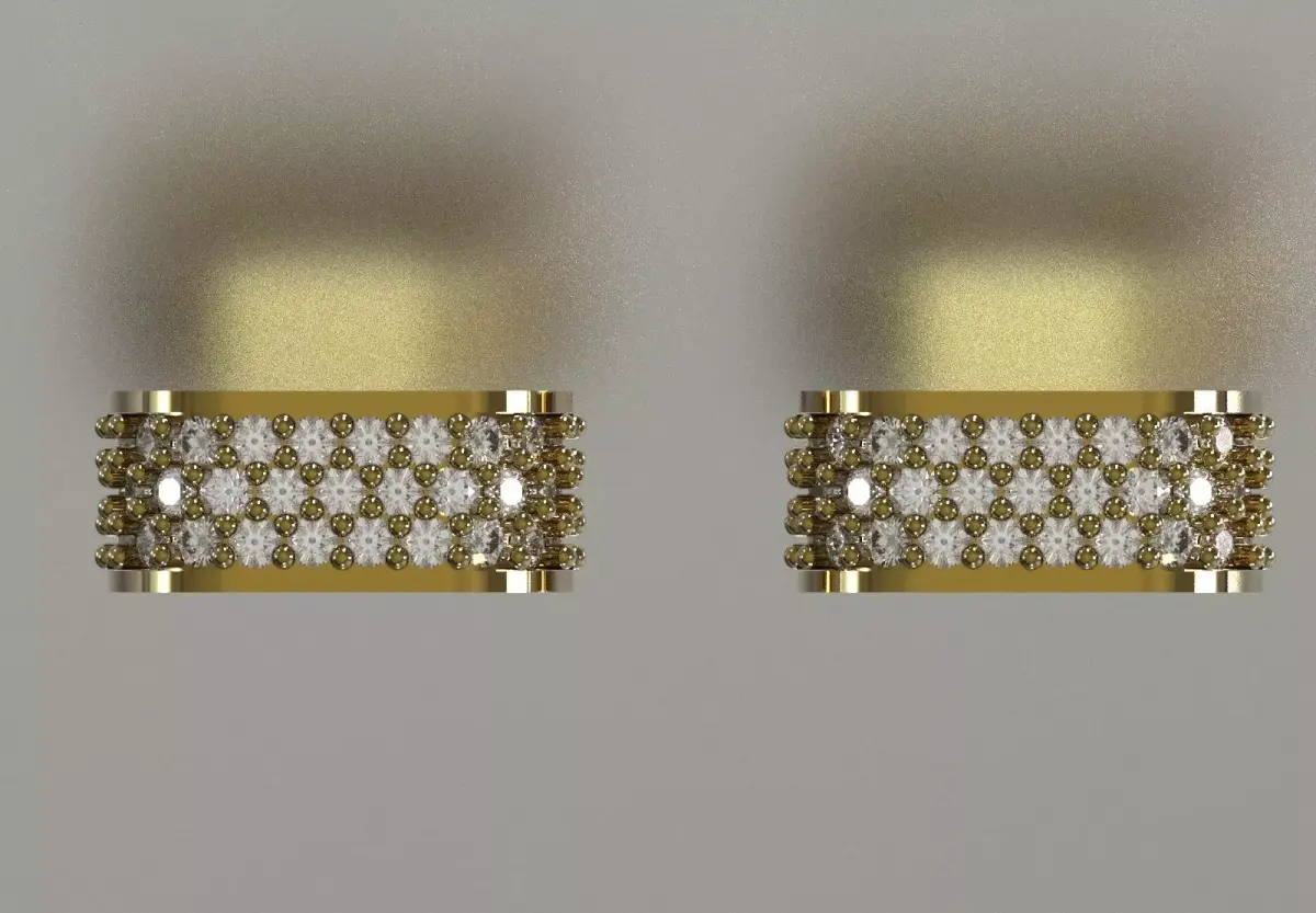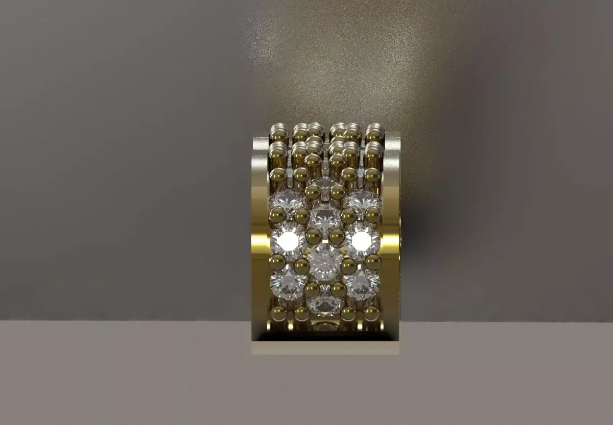 Stone Setting: The top surface of each motif is covered with Two Dense Rows of Small Round Diamonds.