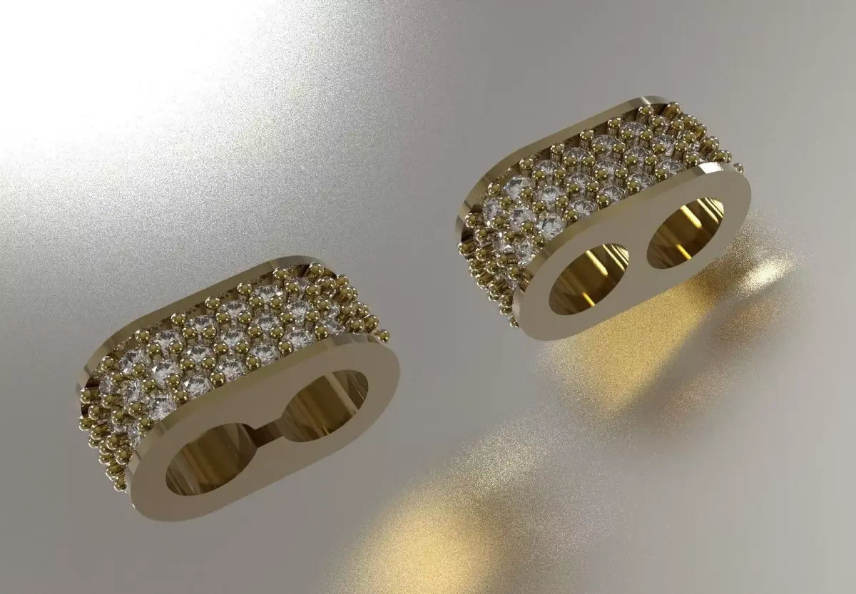Rectangular Chain Motif with Double Pave Diamond Rows, a symbol of focused brilliance, engineered design, and linear luxuryThe GL0043 is a pair of Small, Rectangular Ornament Motifs. Designed as Spacer/Connector Charms, these pieces can be used on a variety of chain bracelets and necklaces. The design focuses on an engineered shape, two dense rows of diamonds, and two symmetrical holes for the chain to pass through, creating a structured, linear, and highly lustrous effect.