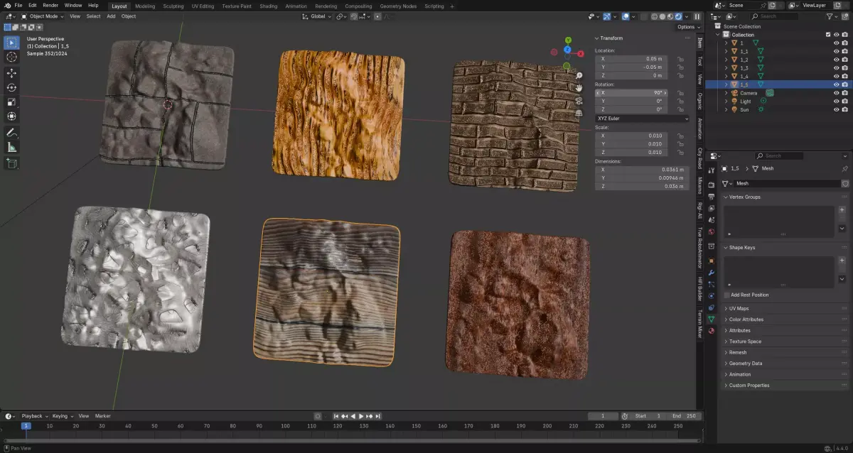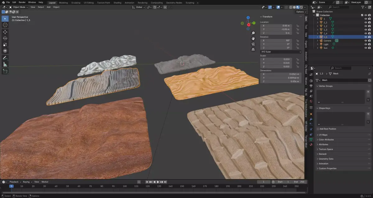 Rectangular textured terrain wood plank block brick printing sculpture Abstract Art