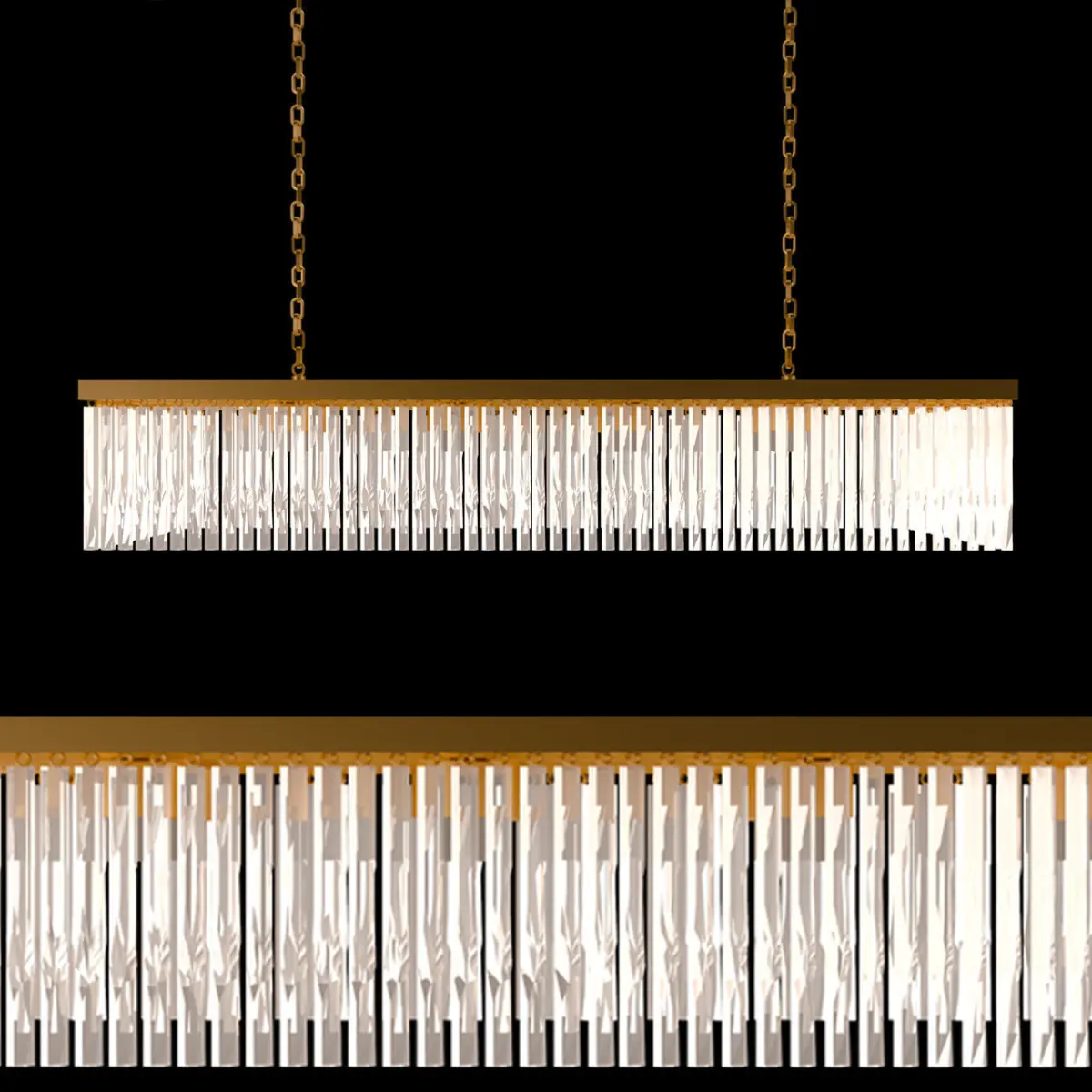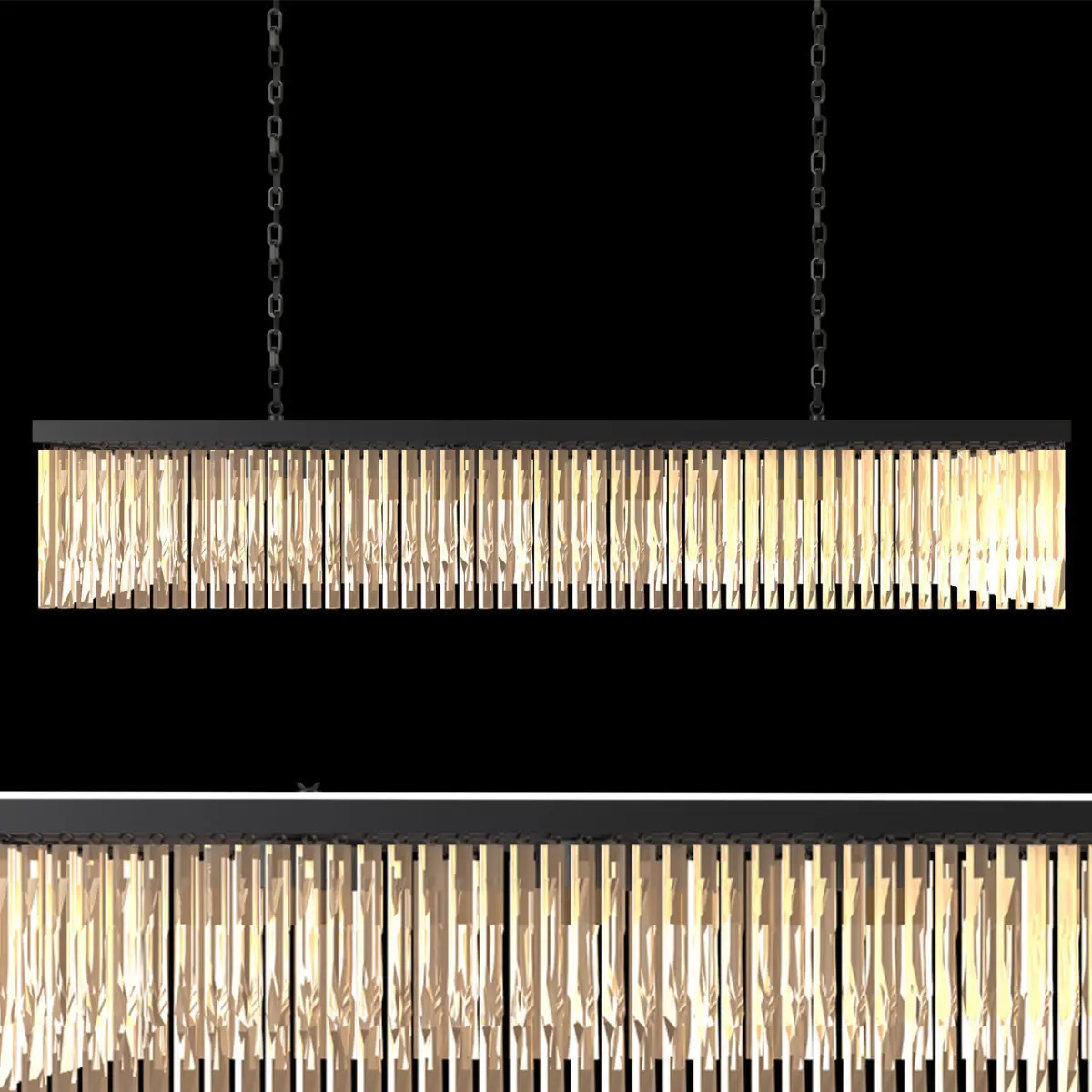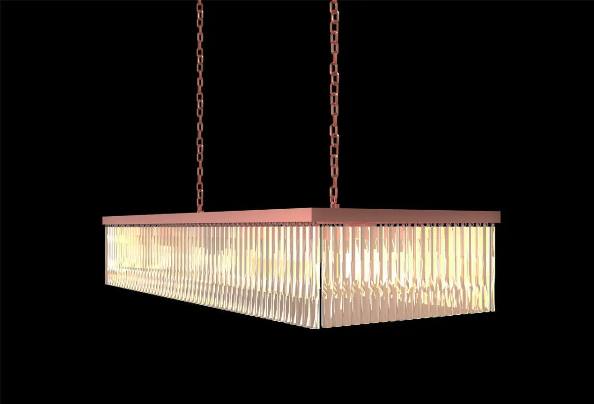RECTUNGULAR CHYNDELIER ITS IS LOOKS GOOD IN THE TOP OF DINING TABEL OR A TEA TABEL AND IT ALSO LOOKS GOOD IN THE MAIN HALL ITS GLASS IS LIKE A CRYSTAL IN THIS MODEL YOU WELL GET THREE COLOURS