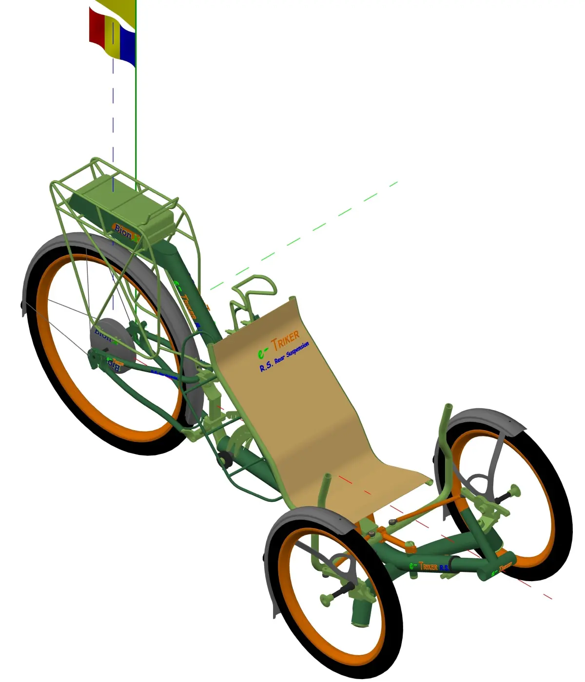 Recumbent Trike with Brushless Motor BionX.Product RoTrike HandMade.Worked exclusively in Autocad 2008.Real project - this tricycle was built specifically for a person with disabilities (frame shape and size).