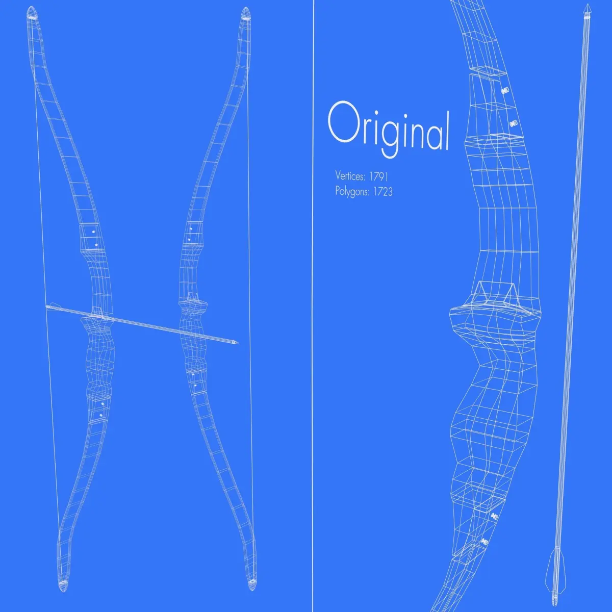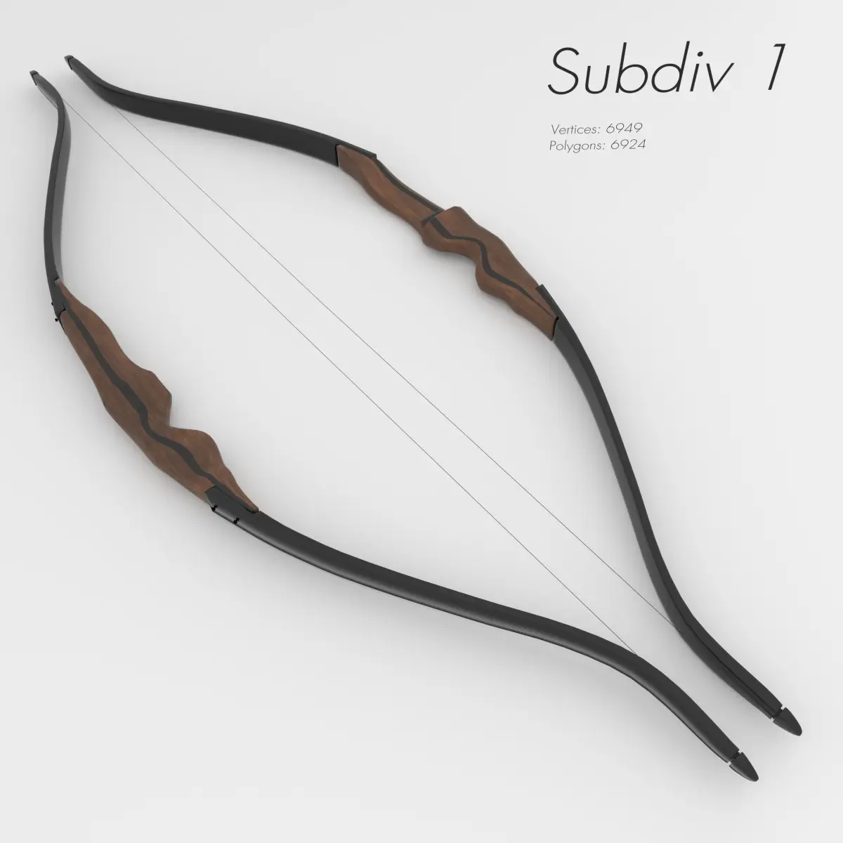 This recurve bow is made in Blender 2.78c and the materials are created in Substance. The bow is rigged and animated. The exported textures were reimported in Blender and setup using the PBR workflow metallic/roughness. The model can be used in broadcast, advertising, realistic (game) environments. Model is built to real-world scale - the unit system is metric – and has a length of 1.57cm (62 inch). No third-party renderer or plug-ins needed.| Mesh Specs |