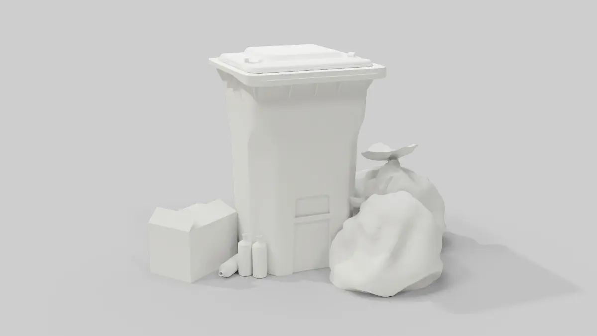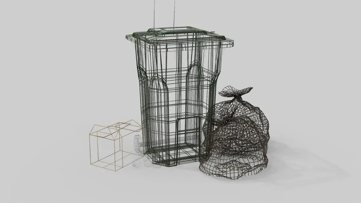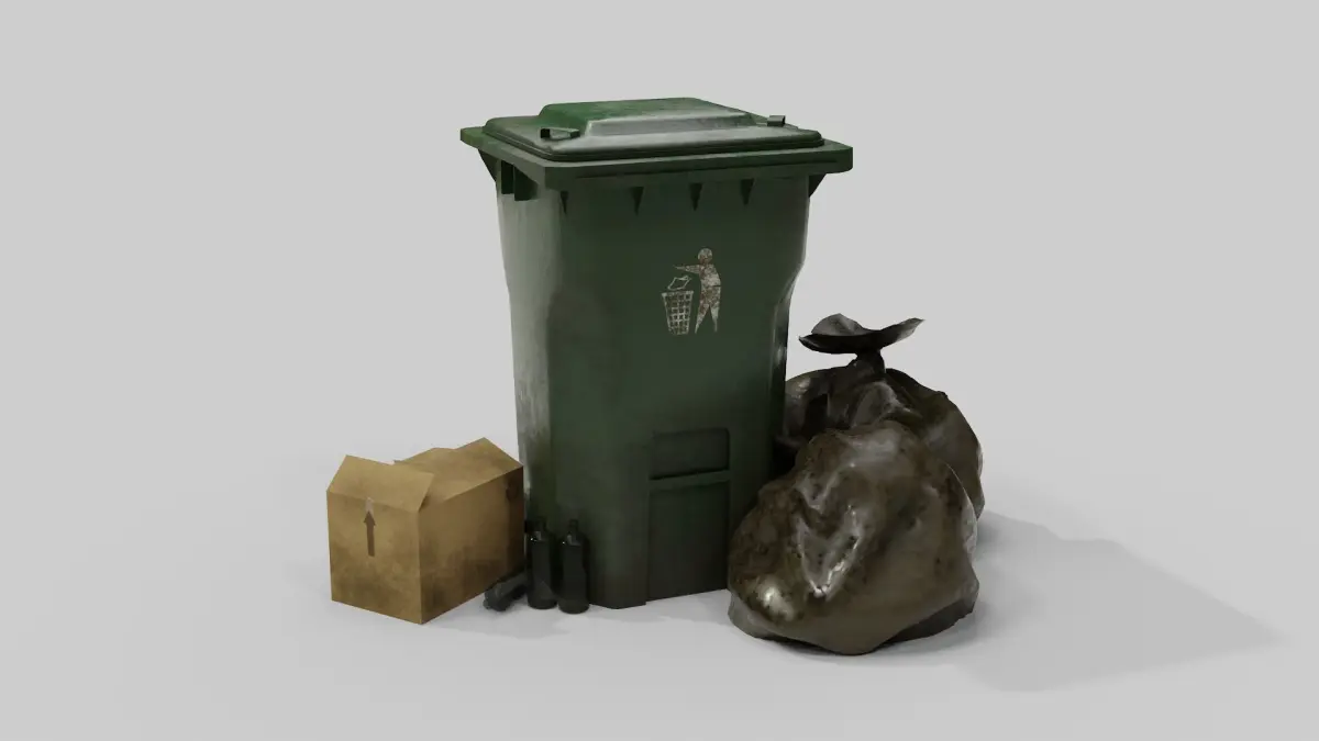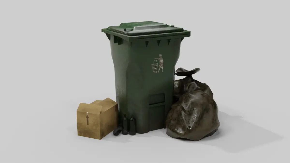 Low poly, Game ready, high detailed and realistic recycle bin including some extra supporting assets