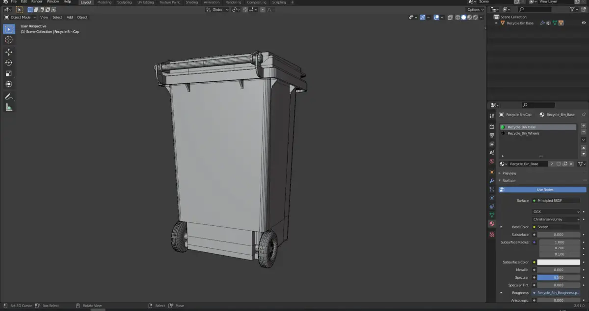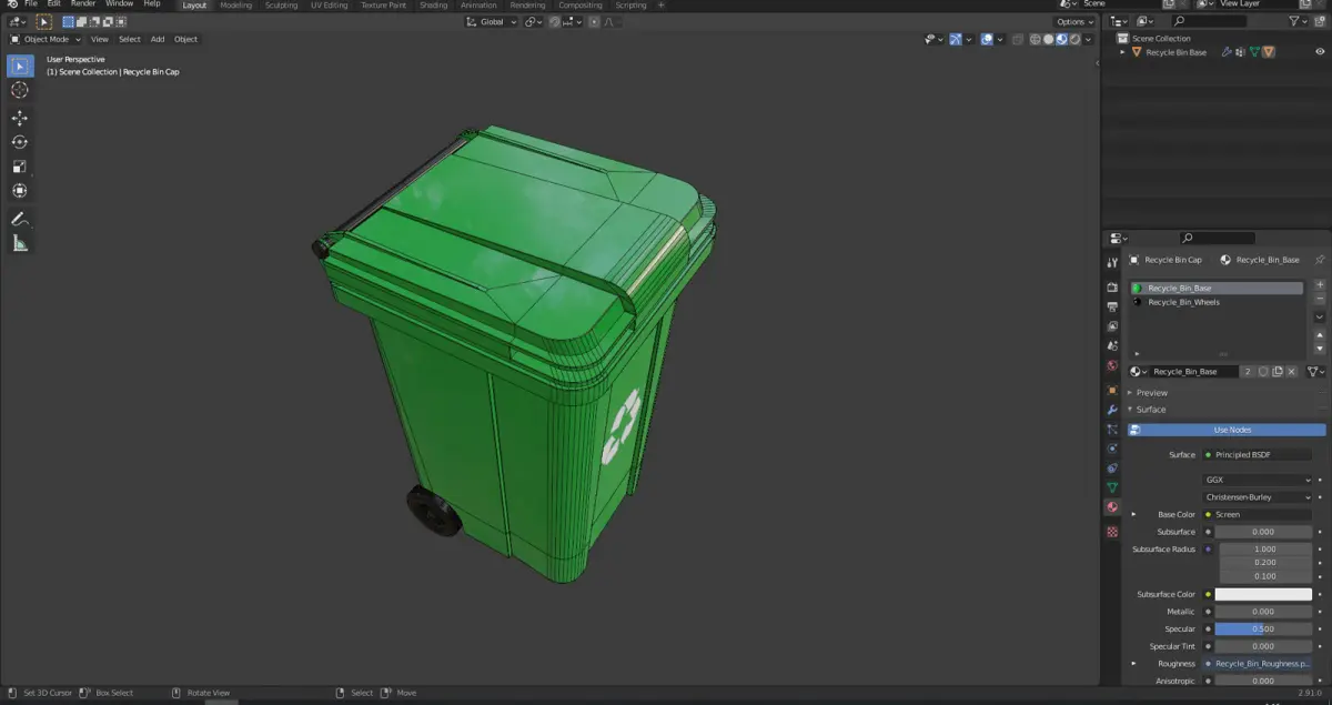 - Includes 2 textures: black & white recycle logo which can be colored to any color using screen blend mode. And roughness map for subtle imperfections effect.