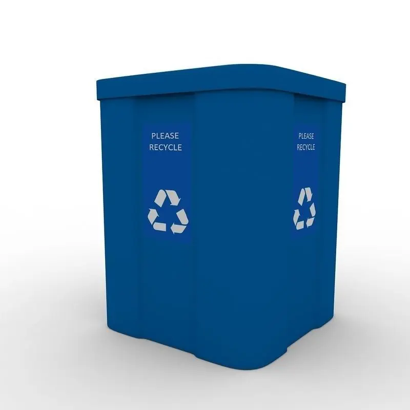 RECYCLE BIN : This is the standard blue box recycling bin. The shape is pretty standard across the board, but cities and districts often brand them with their own logos and instructions. A PSD has been included as a support file if you would like to alter the logo/printing. Heavy duty and stackable, they are commonly used as containers for glass and plastic, pop cans, beer bottles... Any non-paper recyclables. They are often also used as everything from a beer cooler to cheap furniture. This model is also getting more and more common in video games, as the standard wooden crate is getting pretty cliche.