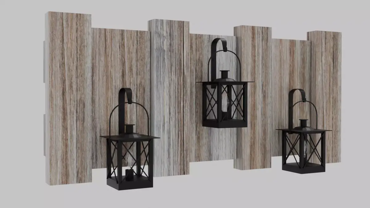 - Metal Hangers: Three black metal brackets are modeled to support the lamps.