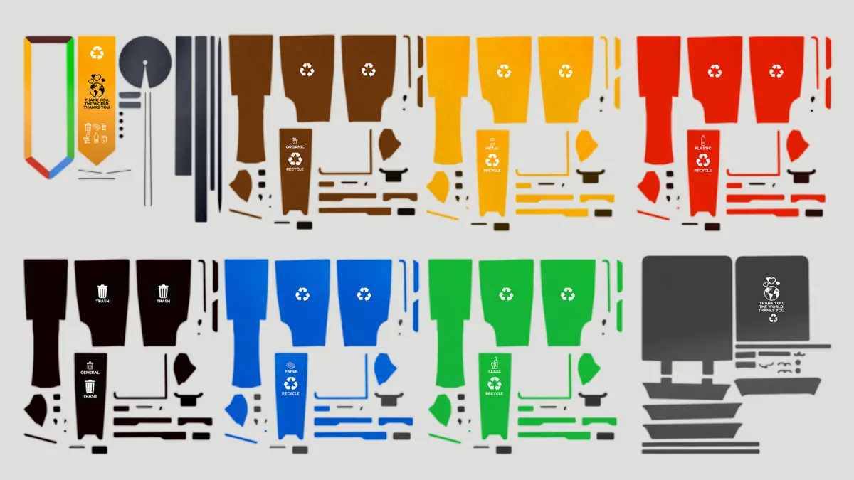 Recycling bins developed in cinema 4D R19 and exported to files; 3ds, dae, fbx, obj. The set consists of 7 bins and 1 totem with independent UV maps.The textures are in 2K UV mapping used in the bin, lid and individual totem. The mesh is simple and open polygonal. The file also has a PSD texture of the bin's UV mesh.Take advantage of this item at an introductory price.I hope you like it and find it useful in your work.Send suggestions and leave a like, help spread the word, thank you!renatodalle.