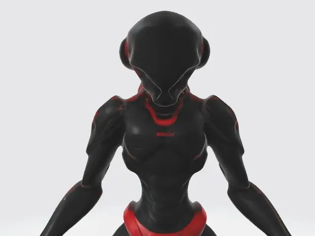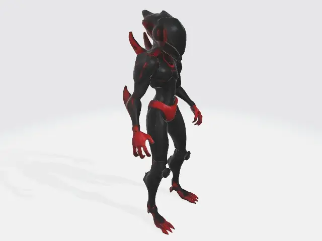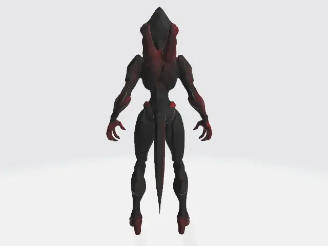 A red and black alien robot with a sleek, futuristic design combining extraterrestrial features and advanced robotics. This hybrid creation showcases intricate mechanical details, sharp armor, and an aggressive, cosmic aesthetic. Perfect for sci-fi games, animations, and 3D projects, with clean textures and high-quality detailing for seamless integration.