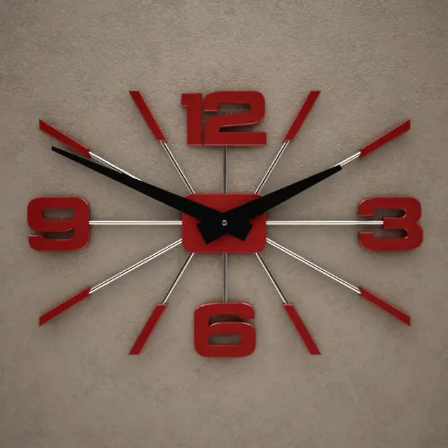 HomeCatalogRed and White 4 Digits Wall Clock 10 3D model