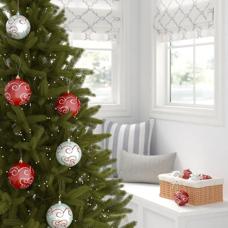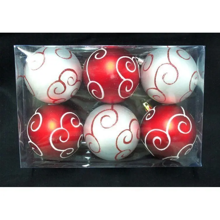 - This set of three plastic shatterproof ball ornaments is perfect for adorning your Christmas tree, or filling out a bowl in the entryway. These traditional ball-shaped ornaments showcase red and white hues accented by contrasting swirling patterns. Dangle these ornaments from trees, your porch, or anywhere that needs a festive accent: they're sure to create a warm, festive feel in any area. Plus, if you have a home with little ones and pets running around, the shatterproof design is a must-have feature for your ornaments.