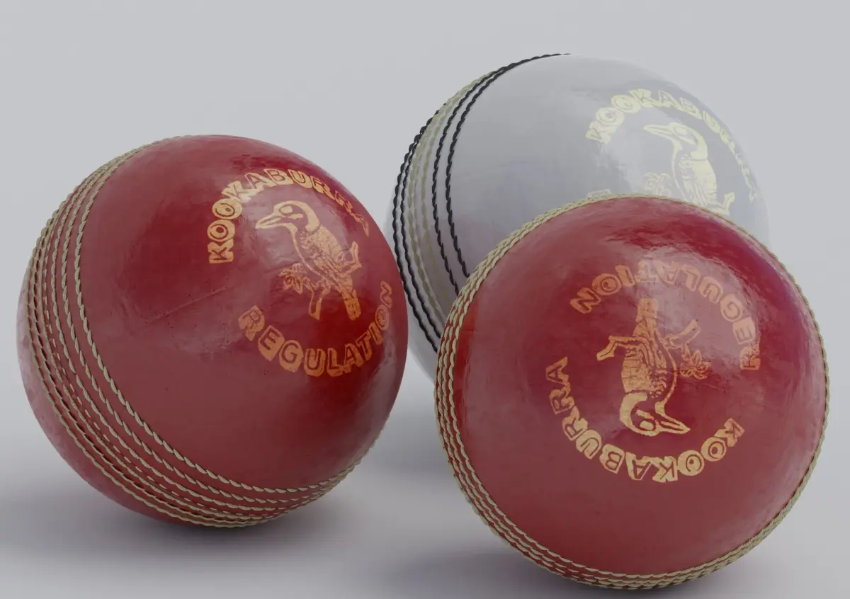A detailed model of red and white Kookabura cork cricket balls modeled in Blender. Single Mesh object