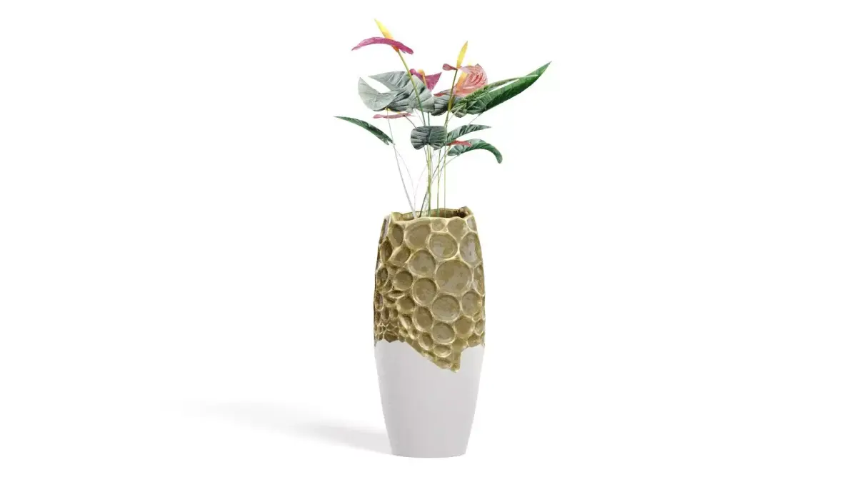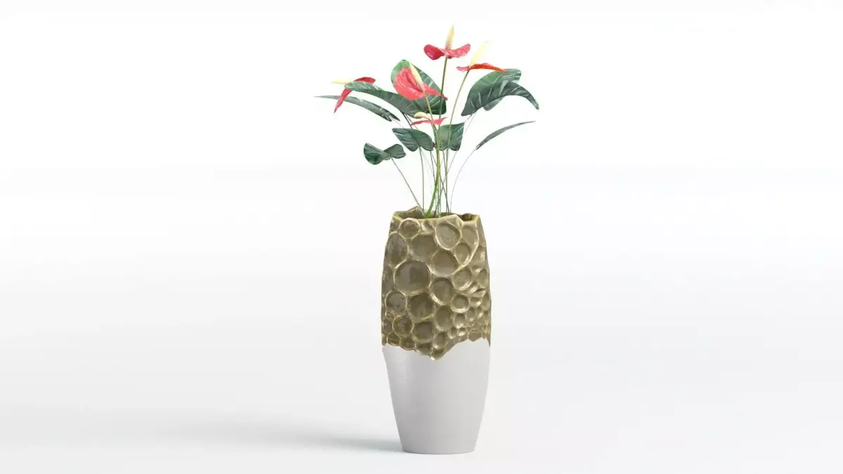 Description: In the downloaded file, you will find my model of a houseplant. This is a red anthurium in a designer vase.All materials are complex and multi-layered. The vase combines two textures. There are smooth glossy ceramic and matte clay with a gilded patina effect on the edges. The model can be used for both close-up and distant shots. I leave you the option to adjust the level of detail and turn individual details on and off. Increase or decrease the mesh density using the meshsmooth modifier.You can also disable the hairs on the leaves and stems of the plant. To do this, turn off the Multiscatter objects. Or disable the ROSA GREEN LEAF and ROSA RED FLAVER objects in the OBJECT layer.