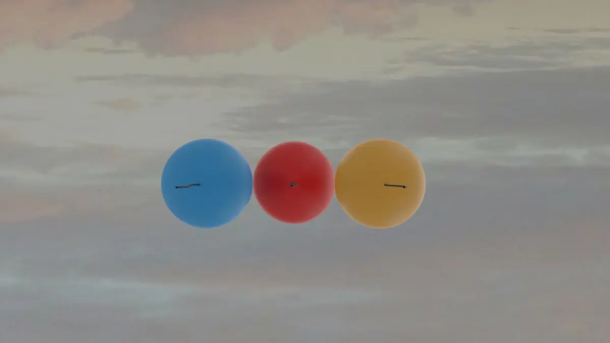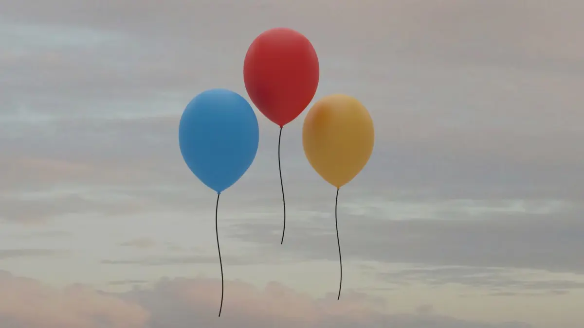 This is a model of red, blue and yellow balloons.Dimension WireH : 4.01m Balloon X : 2.61Y : 2.6Z : 3.44Polygons: 3956 x 3 + 11868Vertices : 3970 x 3 = 11910Files size(Biggest) .obj ( 1.6MB )(Native) .blend ( 1.27 MB )(Smallest) .mtl ( 799 bytes )Files(Native) .blend.obj.fbx.glb.usdc.mtl.stl.plyRender : CyclesApp/Ver : Blender 2.93