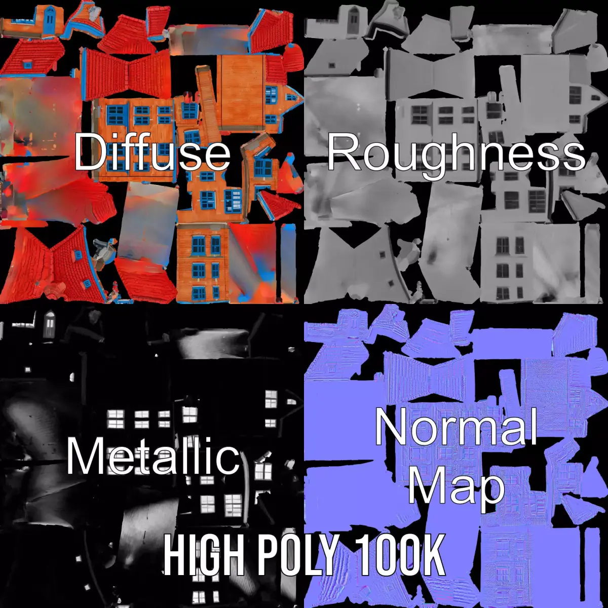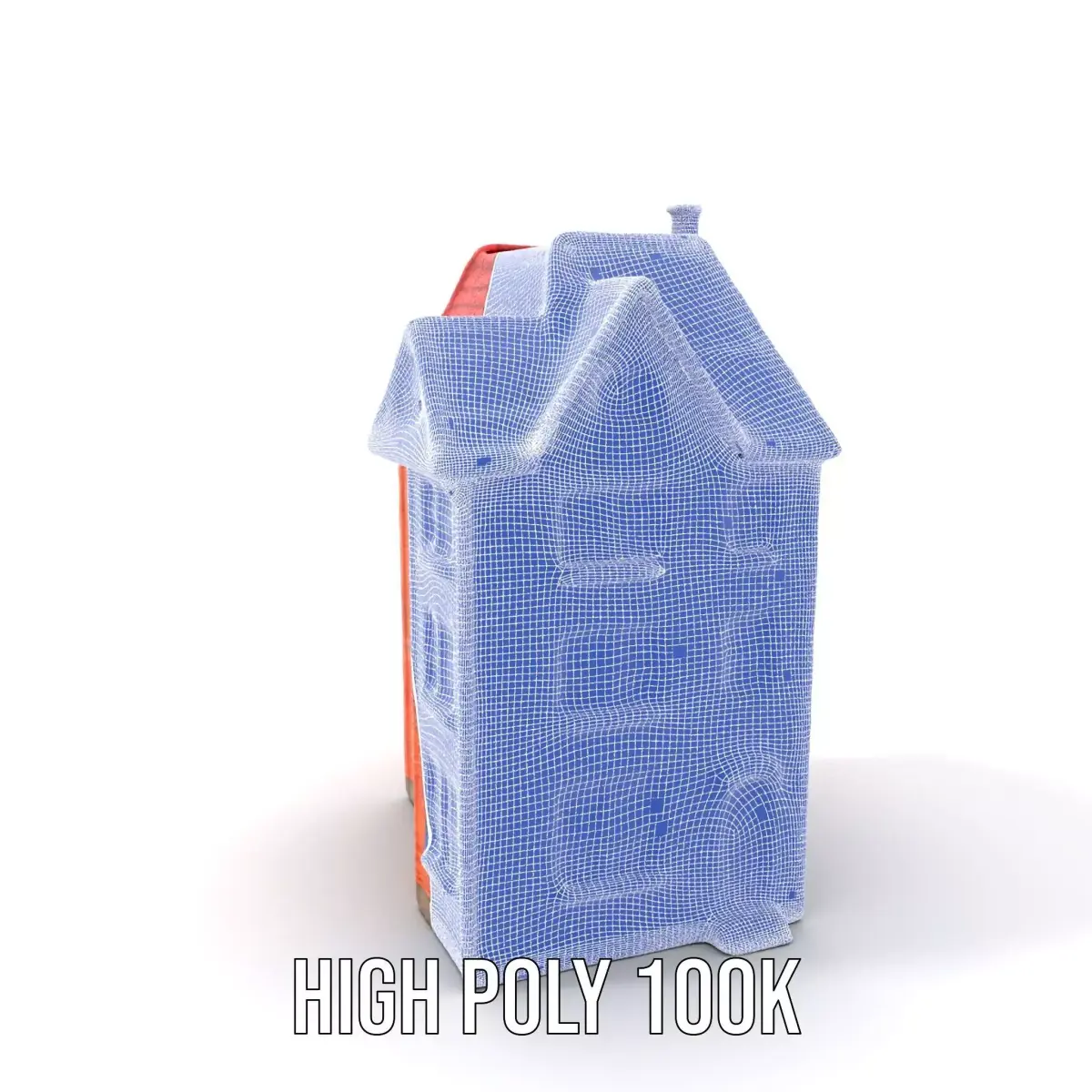 This 3D model features a classic red brick house with vibrant blue window frames and a red tiled roof, ideal for urban environment scenes. Each model has 3 levels of detail: low-poly (1000 triangles for mobile), middle-poly (10,000 triangles for environment), and high-poly (100,000 triangles), which allows for the use of this model in production rendering (such as 3ds Max, Maya, Cinema4D, Blender, Vray/Corona/Cycles, and all others), game engines (Unity and Unreal compatible), and interactive presentations, providing a choice of detail based on the LOD System principle. Suitable for creating architectural visualizations, city simulations, and background settings. The model's textures are PBR, Diffuse, NormalMap, and reflection/roughness/metallic, which are suitable for any modern rendering engine. All models accurately unwrapped and have no overlapping UV. All textures are 4096*4096 in size. Please like and leave a comment for the model if you enjoyed it.