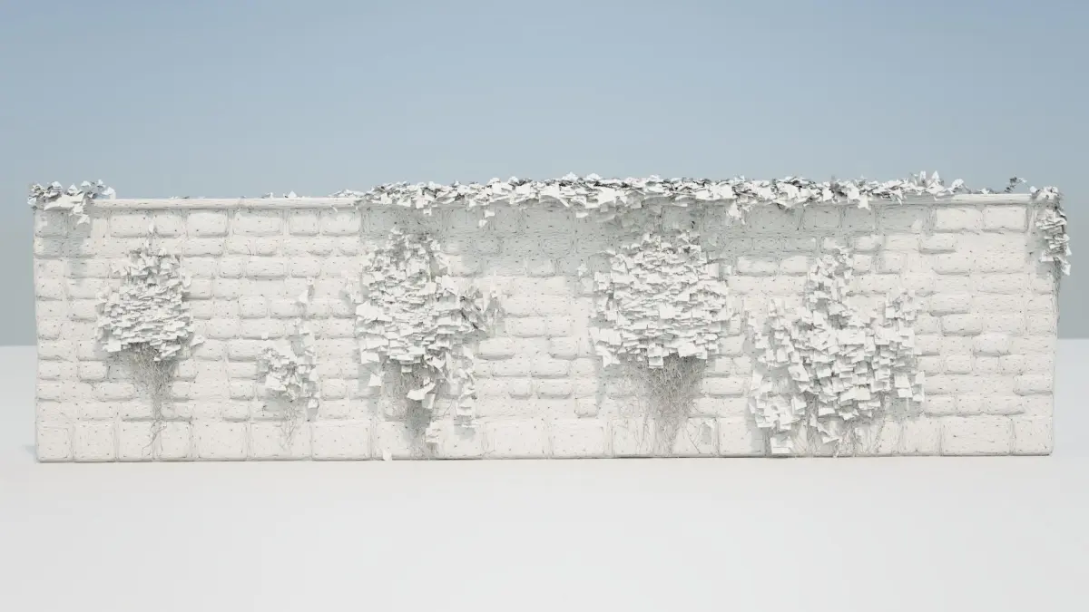 10m x 2.6m old red brick wall covered with ivy.Model is made of 176588 quad polygons (or 353168 after triangulation) and has 3 objects:-BrickWall - 49 851 polygons , color texture and normalmap (4096x4096 .png in textures.zip file),-IvyLeafs - 108 296 polygons , color texture with alpha (RGBA), normalmap,-IvyBranches - 18 441 polygons, simple material with no textures.