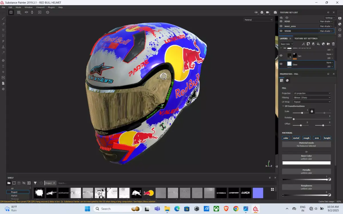 This premium Red Bull-inspired Racing Helmet 3D model is designed with high-quality details, perfect for motorsport projects, animations, renders, and gaming assets. The helmet features a sleek aerodynamic design, reflective visor, and vibrant Red Bull-themed graphics for a professional, dynamic look.